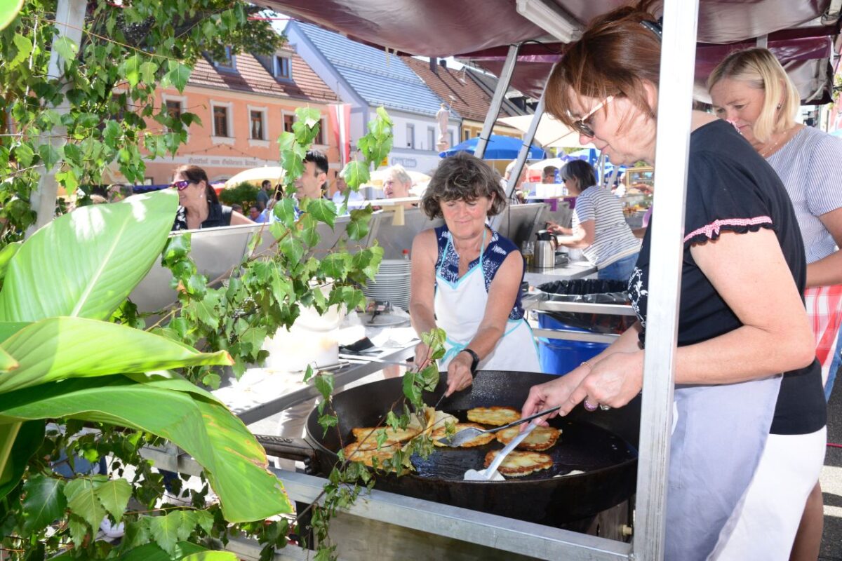 Der strahlende Sonnenschein, der blaue Himmel und eine ansprechende Speisekarte sorgten dafür, dass sich die Plätze beim Bürgerfest in Pleystein zusehends füllten. Es gehört auch schon zur Tradition, dass Bürgermeister Rainer Rewitzer mit den Gästen aus der Partnergemeinde Gamlitz den Frühschoppen besucht.