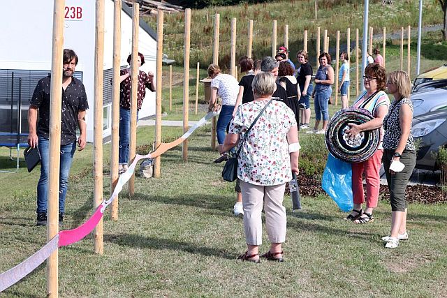 Der Rekordversuch ist geglückt: Es sind beeindruckende Zahlen, die zum offiziellen Ende der Schalaktion von der Aufsichtsratsvorsitzenden Birgit Reil präsentiert wurden. 80 fleißige Helferinnen und Helfer legten rund drei Stunden Hand an, um in zehn Reihen den Schal mit einer Gesamtlänge von 7.000 Metern anzubringen.