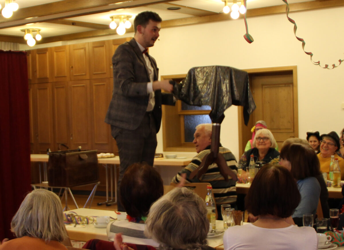 Für die Unterhaltung sorgte Zauberkünstler Marius Koslowski sowie eine orientalische Tanzeinlage. Man weiß es genau, wenn ein Zauberkünstler auftritt, ist immer viel Trick, Ablenkung und Schnelligkeit dabei. Man schaut genau hin, um dem Künstler auf die Schliche zu kommen – und schafft es doch nicht. Da hilft nur staunen, sich begeistern lassen und kräftig applaudieren. Es verschwinden Dinge, die anderswo wieder auftauchen, Ringe verbinden sich mühelos miteinander und trennen sich blitzschnell wieder, oder Seile mit zwei Enden haben plötzlich vier Enden und zum Schluss des Tricks ergeben sie ein langes Seil. Genau das haben die Gäste erlebt und waren sehr beeindruckt. Die Kosten für die einstündige Vorführung hat die Gemeinde Kirchenthumbach übernommen.