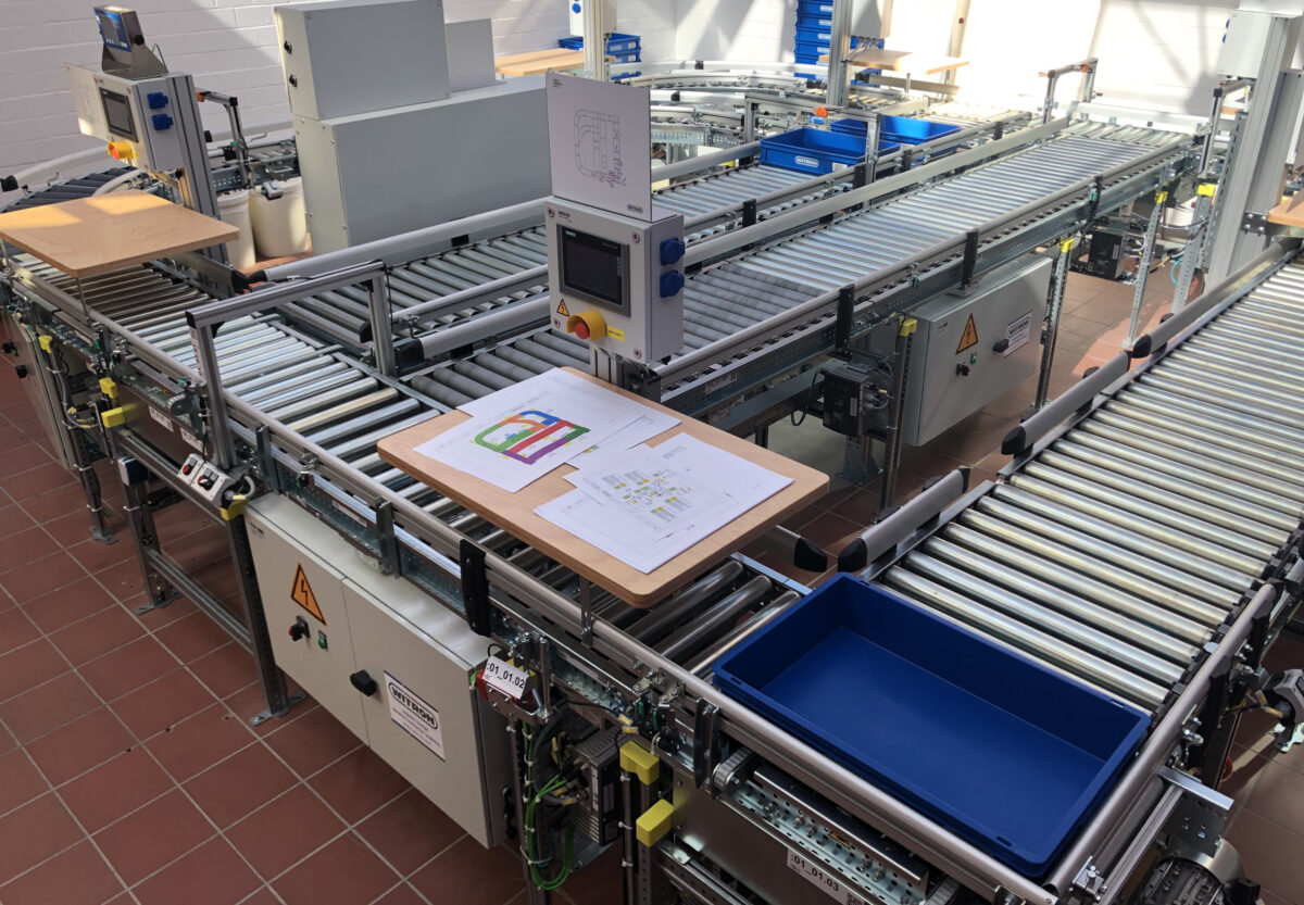 Die Konzeption der Förderanlage ist so gestaltet, dass neueste Industrie-4.0 Komponenten verbaut sind. Sensoren mit IO-Link-Technologie, Vernetzung aller Komponenten über PROFINET, Servoantriebe mit der Möglichkeit Statusinformationen auszulesen, modernste Touch-Panels für die Visualisierung, zwei digitale Waagen mit Anzeige sind hier beispielhaft zu nennen.