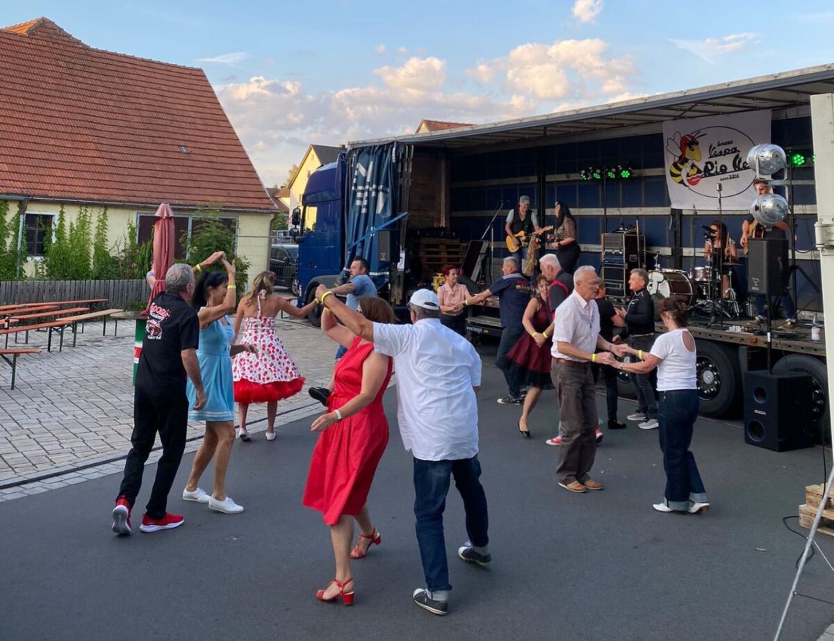 “Christl and the Sessionclub” aus Nürnberg rockten beim Vespival in Schwarzbach ordentlich die Bühne, zahlreiche Tanzpaare swingten auf der Tanzfläche zu feinstem Rockabilly und Boogie Sound und waren auch stilecht im Oldtimer angereist. Sonntag Vormittag ging die Party weiter mit über 200 Vespas, egal ob alt oder neu, Mopeds und Apes. Die befreundeten Clubs aus der Oberpfalz und aus Franken waren stark vertreten.