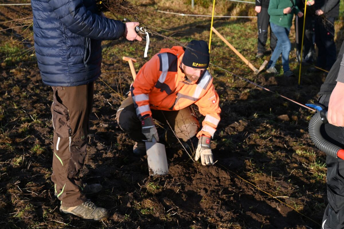 Nach zwei Stunden waren mehrere hundert Pflanzen gesetzt „Eine Hecke zu pflanzen ist kein Hokuspokus, relativ kostengünstig und geht schnell. Das konnten wir heute zeigen“, stellt Wildlebensraumberater Schönberger fest, der Renate Dietl bei der Anlage der Hecke beraten hat. Dies wollte er auch den jungen Landwirten zeigen. Und in der Tat: nach etwa zwei Stunden waren mehrere Hundert Pflanzen eingesetzt. Ergänzt wird die Hecke noch durch einen Totholz- und einen Lesesteinhaufen. In einem weiteren Projekt sollen die Hecke verlängert und Streuobstbäume gesetzt werden.