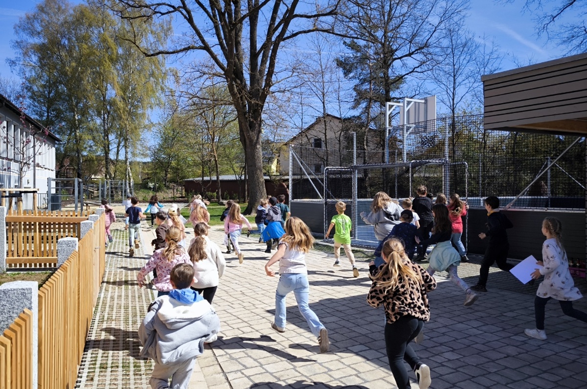 Den emotionalen Höhepunkt bildete schließlich die Beteiligung der Kinder der benachbarten Schule. Mit einem fröhlichen „Hallo“ begrüßten sie die Gäste und sorgten für eine lebendige Atmosphäre. Gemeinsam mit Bürgermeister Hallmann wurde ein Countdown heruntergezählt, bevor die Kinder den neuen Pausenhof und das Soccerfeld offiziell in Besitz nehmen durften. Mit großer Begeisterung wurde sofort gespielt, gelacht und getobt – ein deutliches Zeichen dafür, dass der neue Mehrgenerationenpark bereits am ersten Tag genau das erfüllt, was er sein soll: ein Ort der Begegnung, Bewegung und Gemeinschaft für alle Generationen.