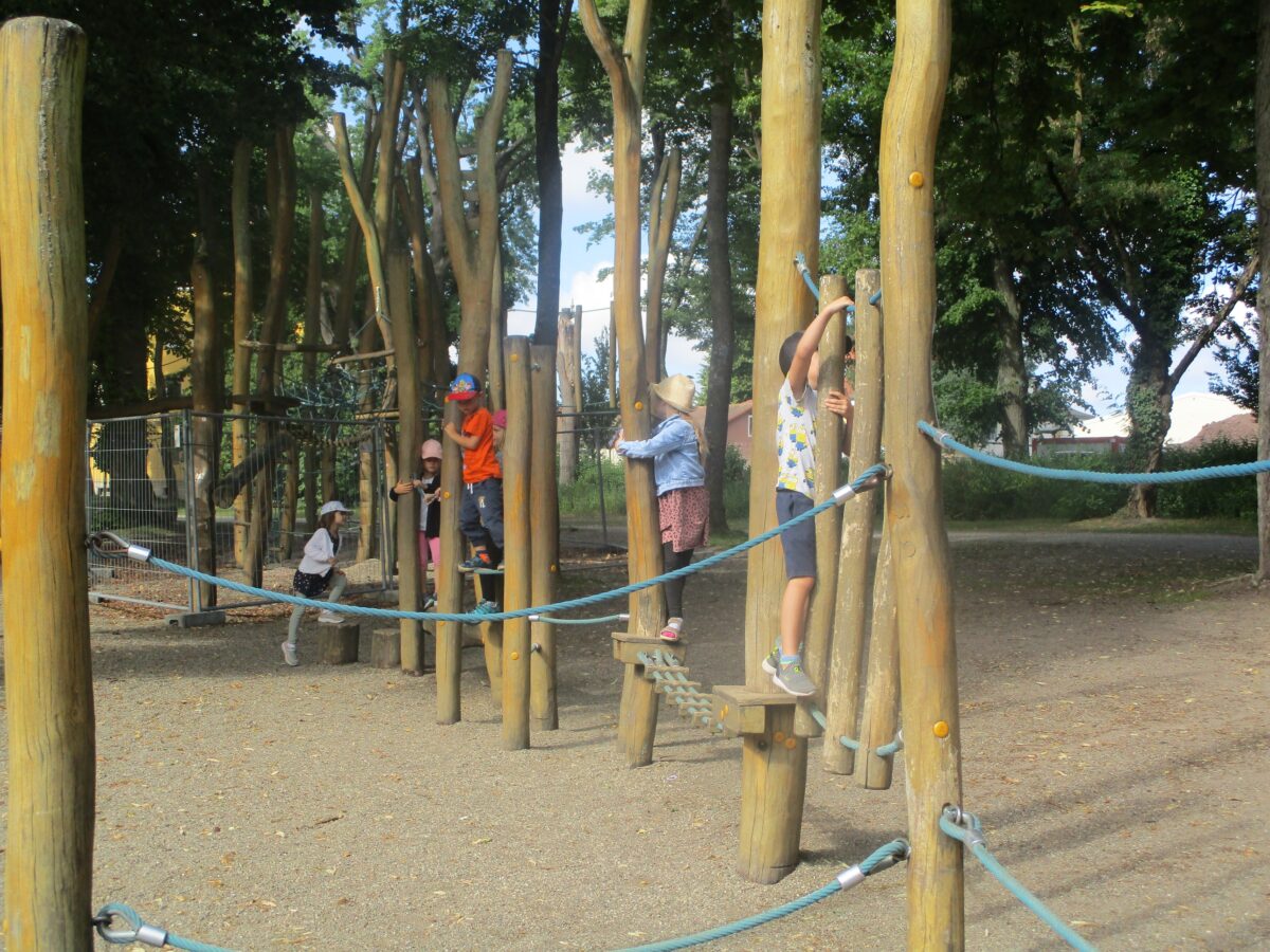 Schon bald haben sie den Spielplatz gefunden und haben es sich dort gemütlich gemacht. Dieser konnte nach der Brotzeit ausgiebig getestet und erkundet werden. Danach ging es auf die Suche nach den Tieren. Lange suchen mussten sie nicht, da sie gleich asiatische Enten entdeckt hatten. Ganz gespannt machten sie sich weiter auf den Weg. Unter anderem haben die Kinder Flamingos, Rehe, Vögel, Esel, Kraniche, Hirsche, Lamas, und viele mehr gesehen.