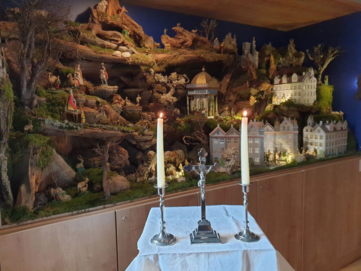 Für diesen ungewöhnlichen Gottesdienstort spricht einiges, schwärmt der Seelsorger, der die Gemeinde seit Oktober betreut: „Das Krippenmuseum ist einfach ein ganz besonderer Ort mit einem ganz besonderen Zauber. Für einen Präsenzgottesdienst ist es allerdings zu beengt. Die Formate Fernsehen und Internet bieten uns nun die Möglichkeit, wirklich nahe an die Krippen heran zu gehen und auch einzelne Figuren zu zeigen.“