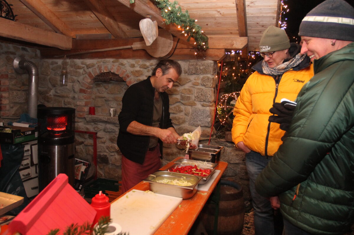Im prächtig geschmückten Garten tummelten sich Groß und Klein, sodass das Durchkommen fast zu einem kleinen Abenteuer wurde. Reichhaltig war auch in diesem Jahr das Angebot an Getränken, darunter Glühwein und Punsch, oder jede Menge Gaumenfreuden. Neben Leckerem aus dem Holzbackofen war vor allem Marco Cakmak gefragt.