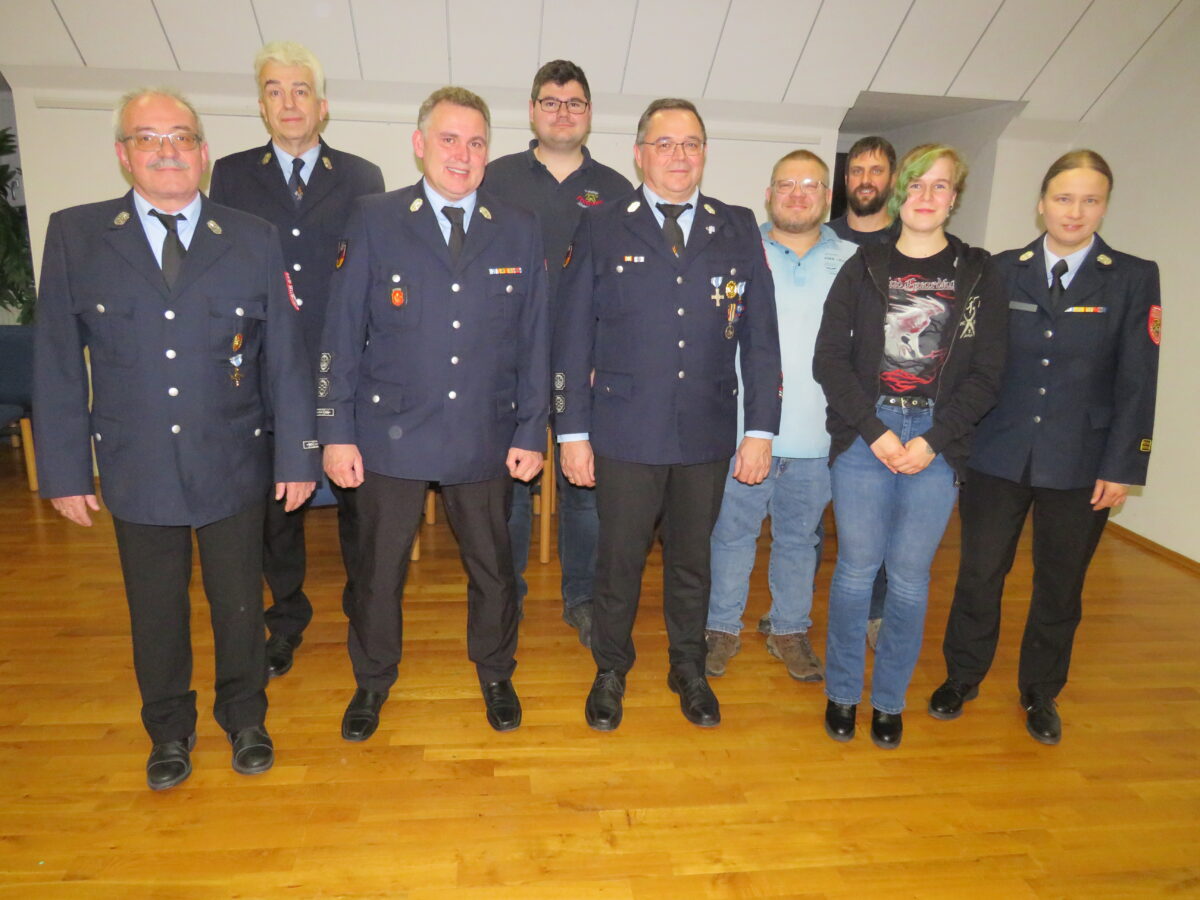 Der neue Kommandant Markus Linder gratulierte den Aktiven zu ihren Beförderungen. Julia Drevenstedt, Stefan Glowatzki, Lena Helgert, Christoph Lindner, Arthur Richtmann, Gottfried Amschl und Markus Lindner freuten sich über ihre Beförderungen.