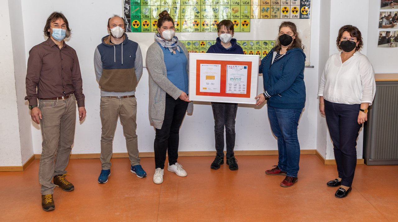 Ein Blick in die Zukunft sieht weitere Optimierungsprozesse im Bereich der Digitalisierung und die Implementierung eines regionalen MINT-Netzwerks unter der Federführung des Landkreises Neustadt/WN vor. Die Auszeichnung nahm stellvertretend für die Schülerschaft MINT-Tutor Jakob Dorner entgegen. Zugleich freuten sich die involvierten Lehrkräfte Studienrätin Theresa Büllesfeld, Studienrätin Lena Reich sowie Studienrat Jürgen Weß, die als Mitglieder einer Steuergruppe den MINT-Bereich koordinieren und in der Praxis federführend umsetzen, über die Wertschätzung ihrer Arbeit durch die MINT-Juroren.