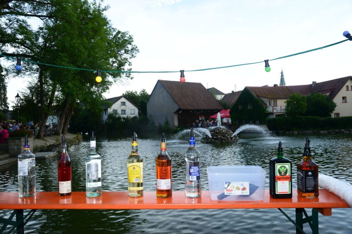 Die Katholische Jugend verwandelte den Asphaltbelag am Stadtweiher in einen Sandstrand, an dem sich mit zunehmender Stunde immer mehr Gäste einfanden, um deren Bar etwas leerer zu machen. Gemütlicher ging es an der Cocktail-Lounge am Kreuzberg zu, bei der, nur wenige Meter abseits vom Rundweg, ein Gläschen in Ruhe genossen werden konnte.