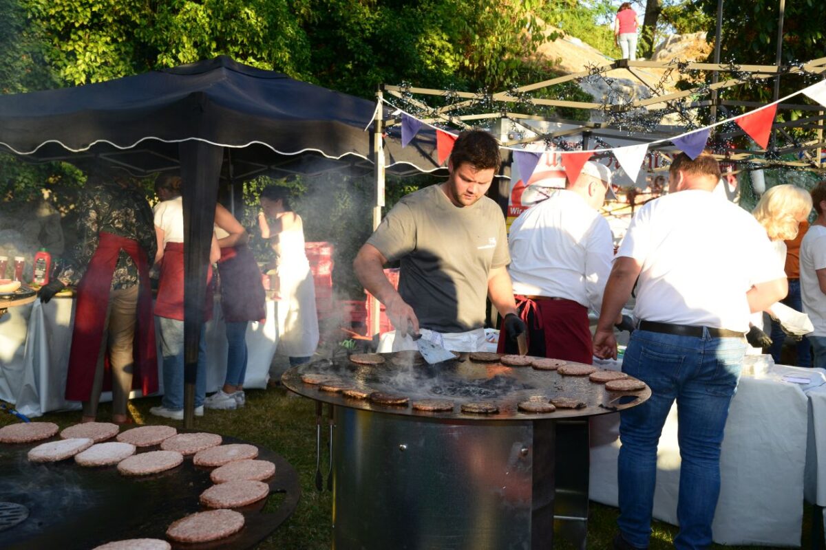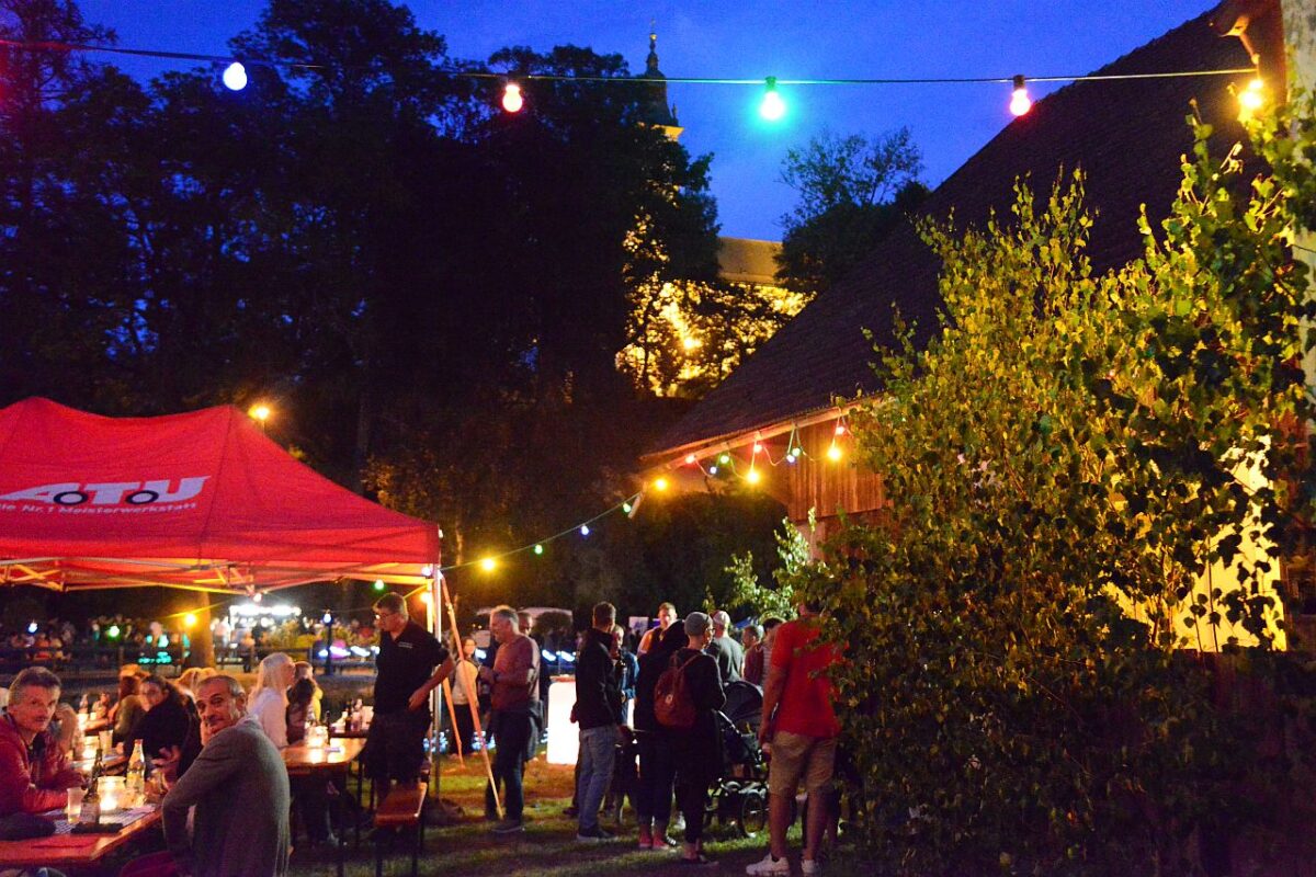 Die Red Sharks hatten ihre Bar aufgebaut, damit den Besuchern der Weg von den Waidmännern bis zu den Griechen am Stadtweiher nicht zu trocken wurde. Im Garten des Braumeisterhauses bot die Feuerwehr Lohma etwas Herzhaftes aus Niederbayern an, überschrieben mit „Saukopf al Dente“.