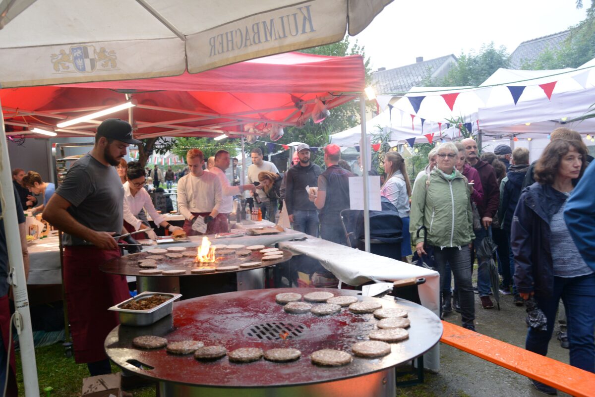 Die Folge: Es wurden eine Vielzahl die Sitzplätze überdacht und Zelte oder große Pavillons aufgestellt. Da schmeckte beim Rundgang gleich mal das Wildgulasch mit einem frisch gezapften Bier aus dem Nachbarland. Bei den „Griechen“ war nur gedanklich die Akropolis im Regen, Gyros oder Calamari und vieles mehr einschließlich der entsprechenden Getränke schmeckte bestens zu Sirtaki im Hintergrund.