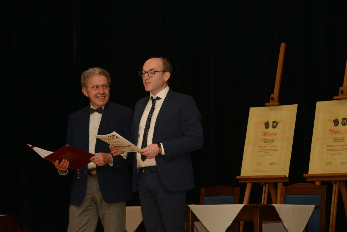 Rudolf Kodalik hob die beständigen freundschaftlichen Beziehung zur Stadt Pleystein hervor. Er hofft angesichts des Schnees, dass heuer wieder die gemeinsame Skilanglaufstrecke zwischen Bor und Pleystein gespurt werden kann. Bors Bürgermeister würdigte im Besonderen die Verbindungen zwischen den beiden Schulen. Nach ihren Ansprachen befestigten die beiden Bürgermeister die Erinnerungsbänder an der jeweiligen Fahne der Stadt, die an das zwanzigjährige Bestehen der Partnerschaft erinnern. Mit der Unterzeichnung der Patenschaftsurkunde zum Jubiläum endete der offizielle Teil.
