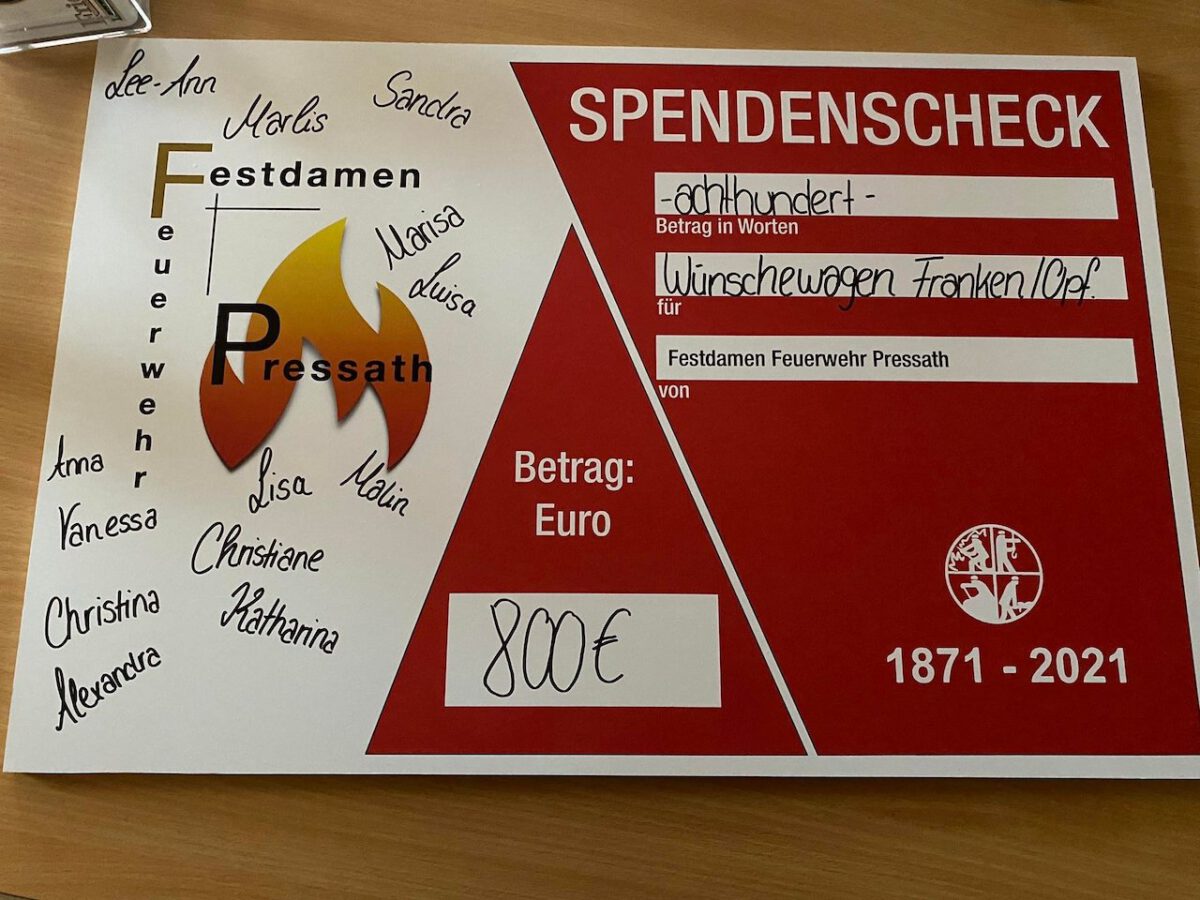 Und so bekamen die beiden Mitarbeiter des ASB nun einen Scheck der Festdamen von 800 Euro überreicht. „Dieses Geld ist aus unseren Verkäufen der Kalender, unseren organisierten Schlachtschüsselessen und anderen Spenden zusammengekommen“, so Organisatorin Katharina Dörner. Sie war es auch, die in einem Beitrag vom Wünschewagen erfuhr und den Kontakt herstellte.