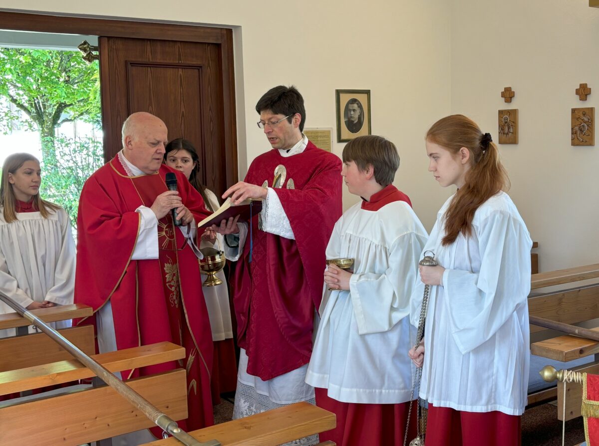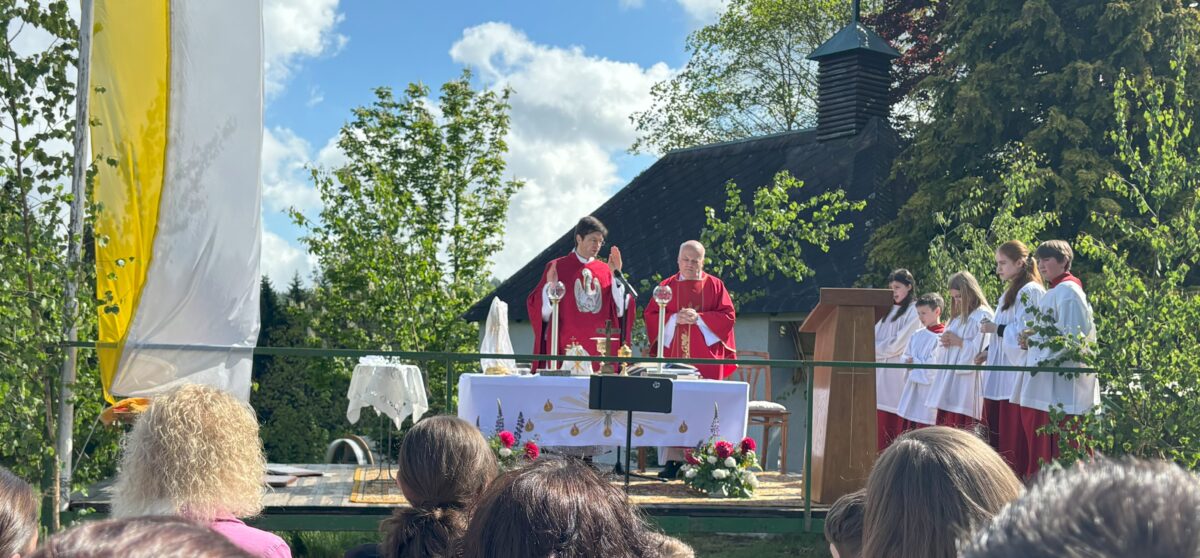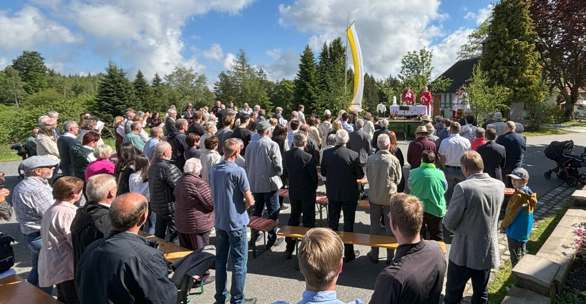 Bei sonnigem Frühsommerwetter versammelten sich zahlreiche Gemeindemitglieder und Gäste, um diesem besonderen Ereignis beizuwohnen. Die Weihe der neu gestalteten Kapelle wurde von Pfarrer Georg Gierl aus Flossenbürg und Pater Darius Sztuk aus Warschau auf einer extra aufgebauten Bühne vor der Kapelle durchgeführt. Pater Darius, der seit fast 30 Jahren die Urlaubsvertretung in Flossenbürg übernimmt, ist vielen Gemeindemitgliedern wohlbekannt.
