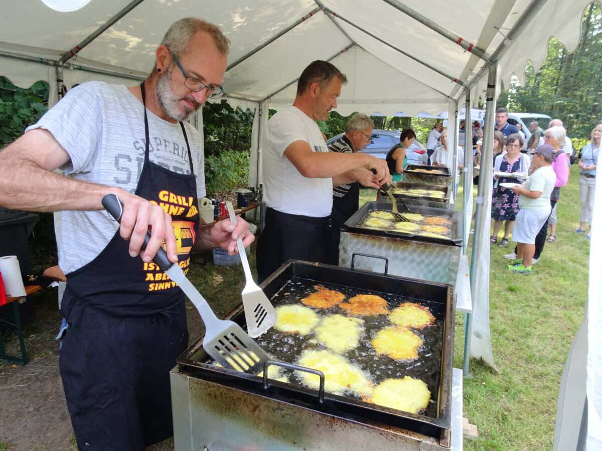 Waren es zunächst Brezen, Brotkuchen, Fischsemmeln, Käse und Bratwürste, die zum süffigen Bier schmeckten, bildeten sich zur Mittagszeit an den Verkaufsständen von geräucherten Forellen, Ripperl mit Kartoffel-Gurkensalat oder Dotsch mit Apfelmus lange Schlangen. Die Helferinnen und Helfer des OWV an den Verkaufsständen hatten alle Hände voll zu tun. So wurden alleine 250 Portionen Ripperl ausgegeben.