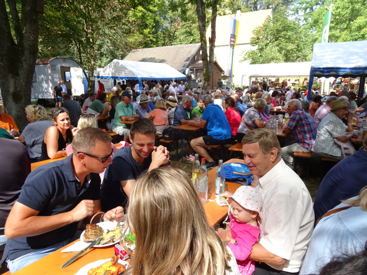 Den ganzen Tag gab es Dank des schönen Spätsommerwetters ein Kommen und Gehen auf dem Eixlberg, sodass bereits in der Mittagszeit weitere Tische und Bänke aufgestellt werden mussten. Für die jüngeren Besucher stand eine altertümliche Kegelbahn zur Verfügung. Ein besonderer Anziehungspunkt für die Kids stellte auch das Baumklettern der Bergwacht dar.