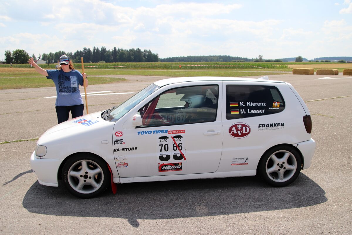 So standen nach einem sehr heißen Flugplatzslalom die besten Teilnehmer am Ende auf den Siegerpodesten. Die beste Dame war Ramona Schrüfer vom ersten Bamberger AC. Der Gesamtsieger kommt ebenfalls aus Oberfranken: Benedikt Siegel vom MSC Pegnitz.