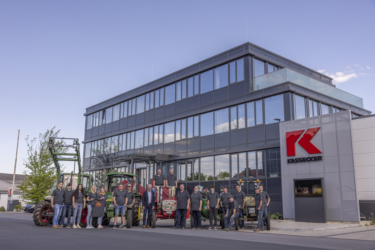 Für diese Veranstaltung hat der Oldtimer Bulldog Stammtisch Münchenreuth wieder ein spannendes Programm für die Freunde historischer Fahrzeuge geplant. Umso mehr freuten sich die Mitglieder des Bulldog-Stammtisches über neue Vereins-Trikots, die sie von ihrem Ehrenmitglied Josef Andritzky überreicht bekamen. Der Geschäftsführer der Firma Kassecker aus Waldsassen ist selbst absoluter Oldtimerfan und unterstützt die Vereinsarbeit seit mehreren Jahren. Zur feierliche Übergabe ließen es sich die Vereinsmitglieder dann natürlich nicht nehmen, standesgemäß mit einigen ihrer Oldtimer-Bulldogs am Firmensitz in Waldsassen vorzufahren.