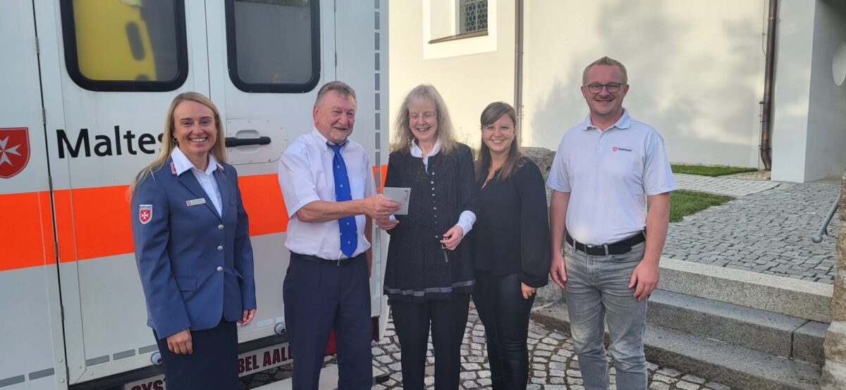 Sowie an die Malteser Diözesangeschäftsführerin Michaela Hutzler aus Regensburg, die es sich nicht nehmen ließ, auch einige Worte an das Publikum zu richten. Gekrönt wurde das Ereignis von einer außerordentlichen Spendenbereitschaft der Zuhörer. Im Anschluss an das Konzert konnten die Musiker den Verantwortlichen der Malteser die stattliche Spendensumme von 600 Euro überreichen, wofür diese sich noch einmal sehr herzlich bedankten.