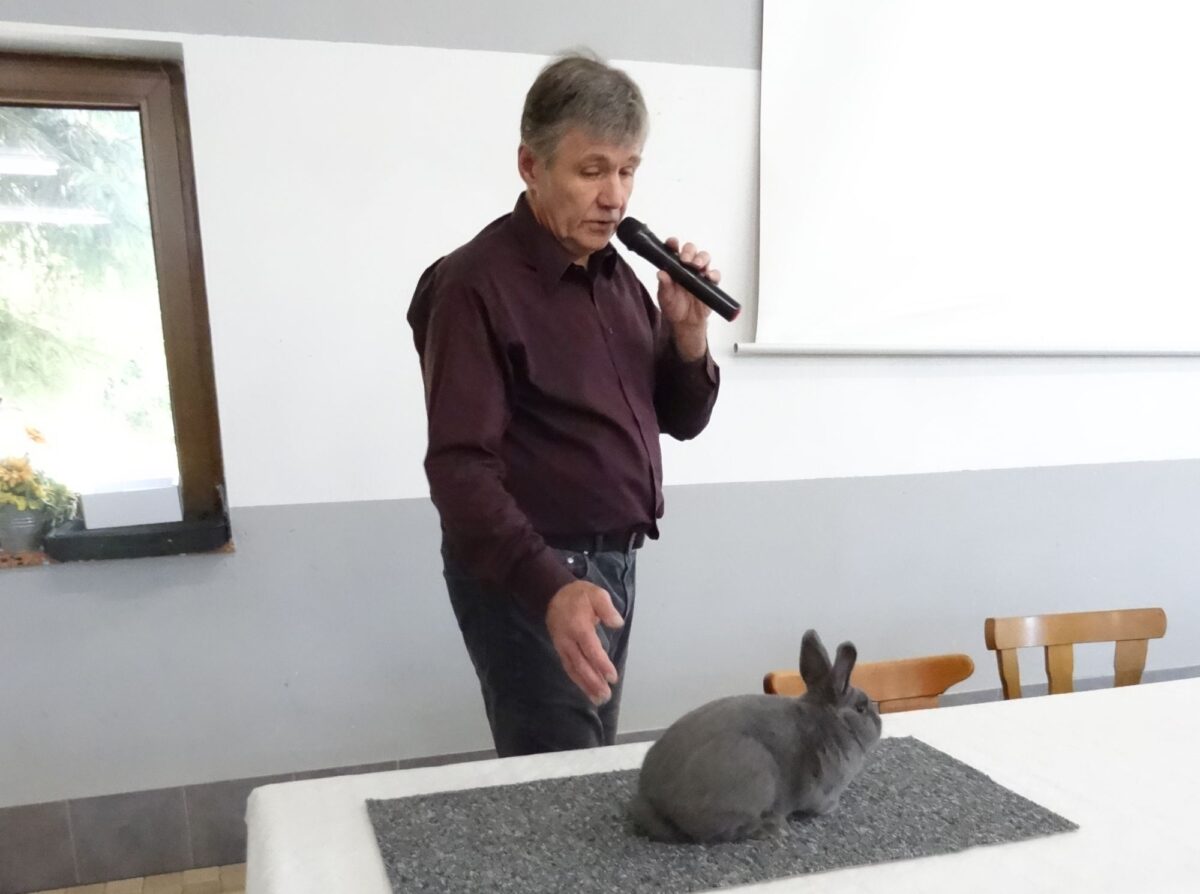 Im Rahmen der Schulung diskutierte Bezirkszuchtwart Hans Schieder mit den Anwesenden über zweckmäßige Stalleinrichtungen, sprach Probleme im laufenden Zuchtjahr an und berichtete über Neuheiten im Standard bei der Bewertung der Tiere. “Für die Beschickung der Ausstellungen braucht der Züchter einen Sachkundenachweis, in welchem tierschutzrechtliche Vorschriften und Verordnungen zu beachten sind.” Kritik gab es von den Züchtern wegen der immer größer werdenden Auflagen über Stallgrößen und der Transportverordnung bei der Beschickung einer Schau. Interessent vor allem war die Herausstellung der Vorzüge der Rassekaninchen durch Preisrichter-Obmann Markus Grillenbeck. Die Vorzüge wurden anhand der Kaninchen-Rasse „Blaue Holicer“ erläutert.