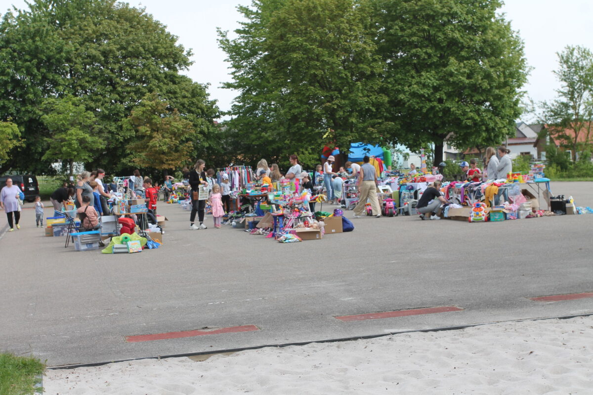 “Das Wetter ist ideal, den Leuten gefällt’s.” Sieglinde Riedl ist wie das gesamte Team des AWO-Ortsvereins vollauf zufrieden. Der Flohmarkt für Kindersachen aller Art stößt im Schulhof nämlich auf große Resonanz. “Es ist unser erster Flohmarkt im Freien”, lässt die AWO-Vorsitzende im Gespräch mit Pressevertretern wissen. 27 Aussteller, Gewerbetreibende sind nicht zugelassen, haben eine große Auswahl für die Besucher parat. “Wir haben ein breites Angebot vom Baby bis zum Teenager”, beschreibt Riedl die bunte Palette.