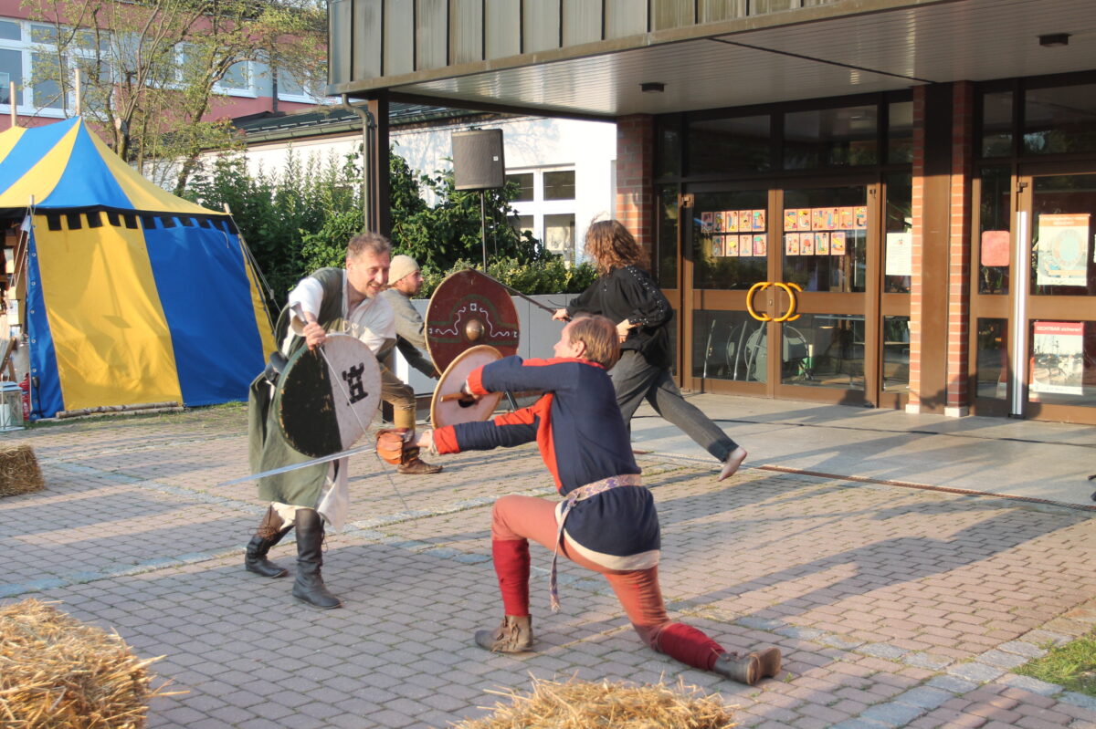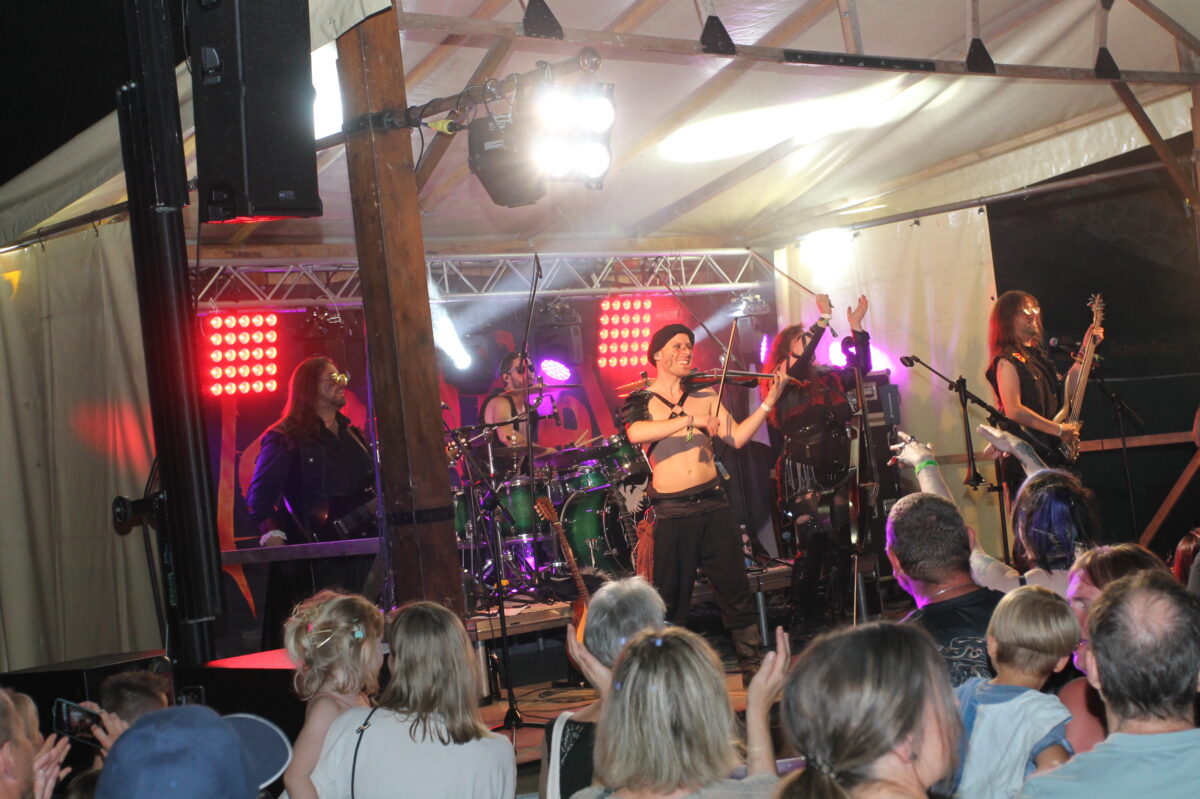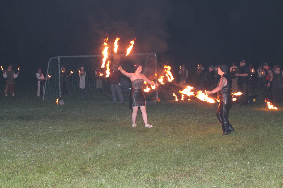 „Metallisch hart und doch voll folkiger Spielfreude“ hieß es zum viel bejubelten Auftritt der Band „Vogelfrey“. Die Band begeisterte mit Rockmusik im Stile von „Rammstein“ und kam um Zugaben nicht herum. Das galt auch nach dem Fackelzug zum Asphaltplatz bei der Schule auch für die Gruppe „Drachenherz“ mit ihrer eindrucksvollen Feuershow.