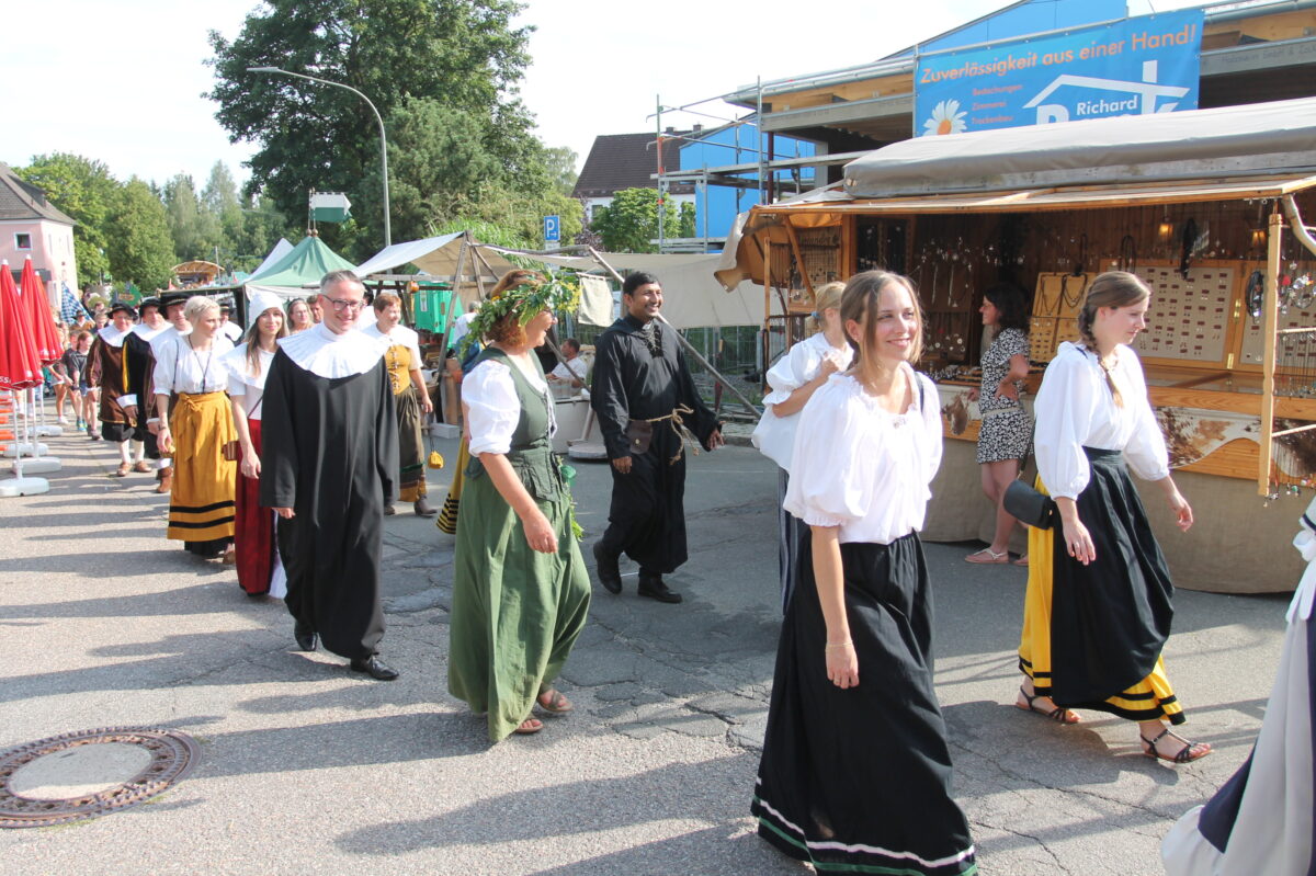„Herzlich willkommen“ hieß es auch von Bürgermeister Markus Bauriedl und Festleiter Tobias Kirner. „Höret diese und wisst, dass die Einhaltung derselben mit allen zu Gebote stehenden Mitteln durchgesetzet wird“, weist Marktvögtin Theresia von Greiffenstein alias Geschäftsleiterin Kerstin Wilka-Dierl auf die „Marktordnung für den 19., 20. und 21. Juley in anno domini 2024“ hin.