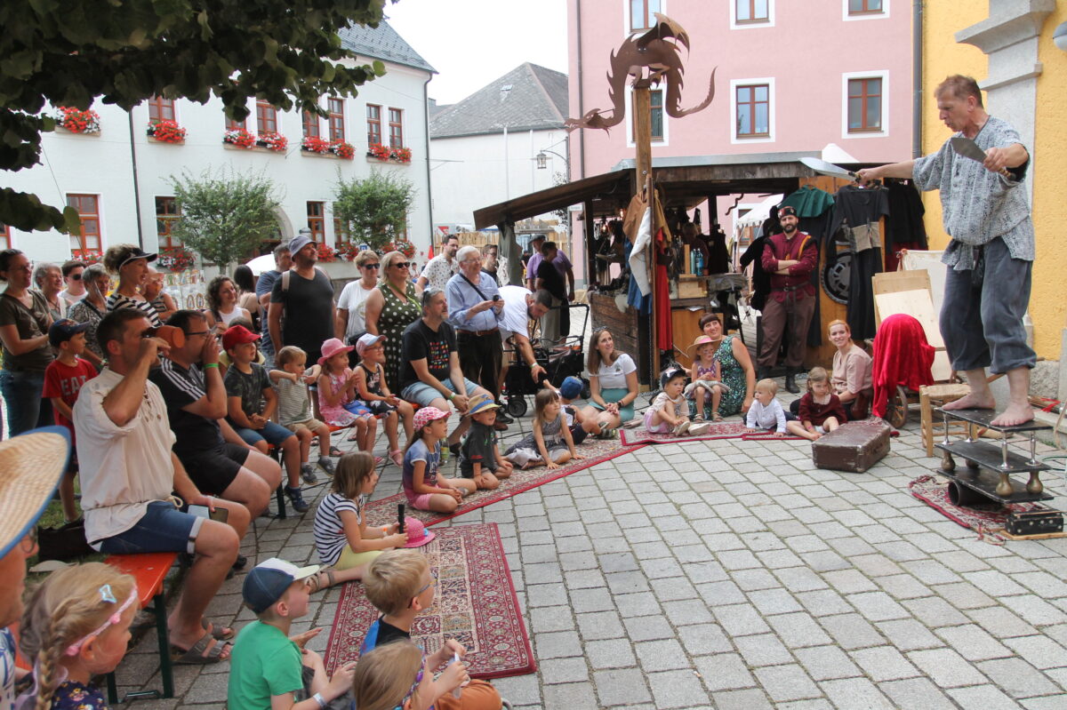 So wurde verkündet: „Der Bürgerschaft von Waidhaus ist mit dem gebotenen Respekt zu begegnen. Insbesondere seyen die Hausfrauen und Weyber unter der Haube ehrfürchtig zu behandeln. Den Witwen und Waisen sey großherzig zu geben. Bettelvolk sey nicht geduldet; es hat sich vom Markt zu entfernen.“ Nach ihrem Ruf „Lasset uns feiern und fröhliche Stunden erleben“ konnte schließlich der Herold den Mittelalter-Markt offiziell eröffnen.