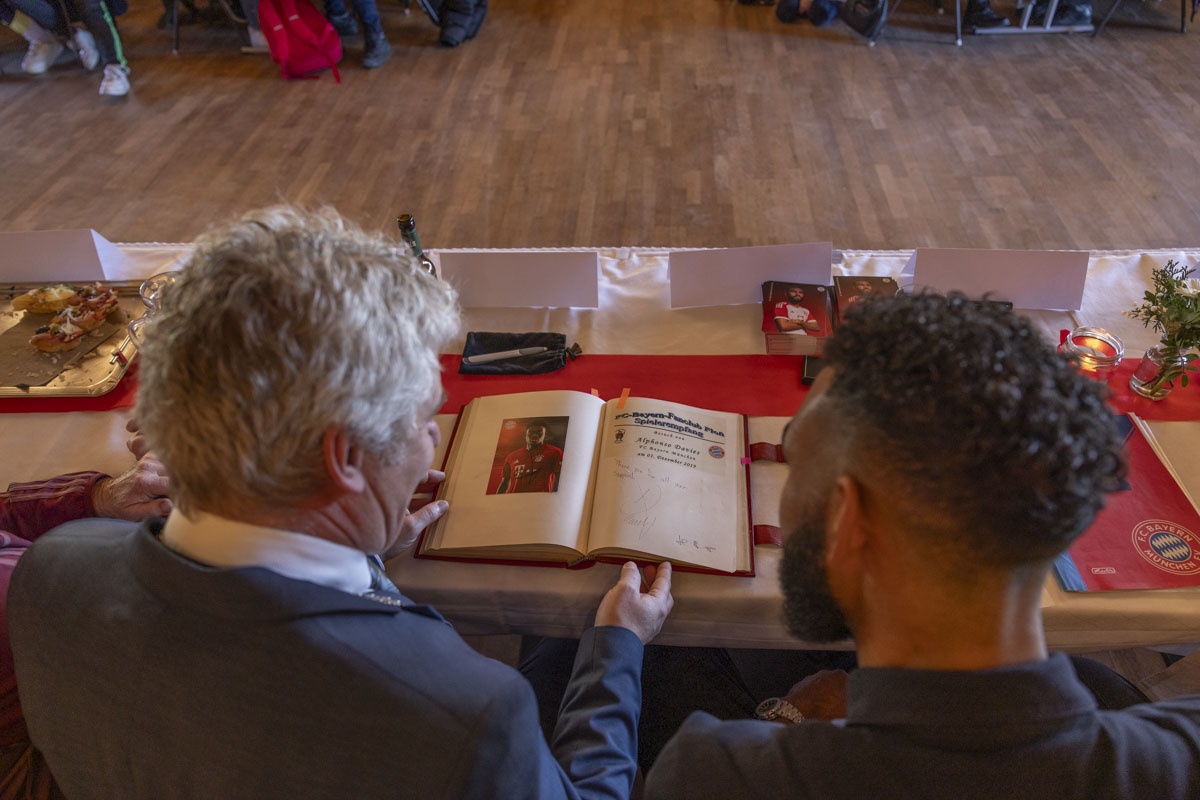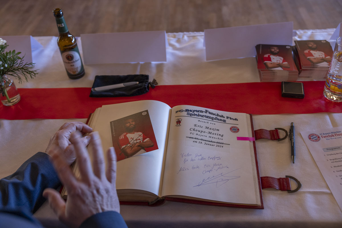 Auch Choupo-Moting ist von dem Empfang begeistert. Er kenne Regensburg und Nürnberg. In dieser Ecke Bayerns sei er zum ersten Mal. Es sei ihm eine Ehre, bei diesem Vorzeigefanclub Gast sein zu dürfen. Bevor er sich in das Goldene Buch der Marktgemeinde einträgt und Unmengen von Bayern-Trikots und Fan-Schals signiert, stellt er sich den Fragen der Anhängerschar. Er sei natürlich erstaunt gewesen, antwortet er auf die Frage, warum er nicht für die Nationalmannschaft von Kamerun beim Afrikacup nominiert gewesen war. Die Gründe dafür kenne er nicht. “Dafür haben sich dann meine Frau und meine beiden Kinder gefreut, dass ich mehr Zeit mit ihnen verbringen kann”, erzählt Familienmensch Choupo-Moting.