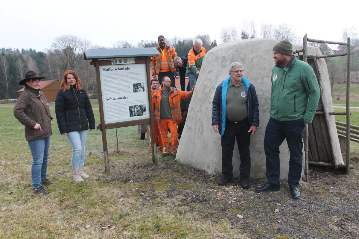 e.V. die Erneuerung des Schaukohlenmeilers in Georgenberg“, sagte der Geschäftsführer beim Ortstermin. „Das 2010 erstellte Bauwerk wurde rundumerneuert und gibt den