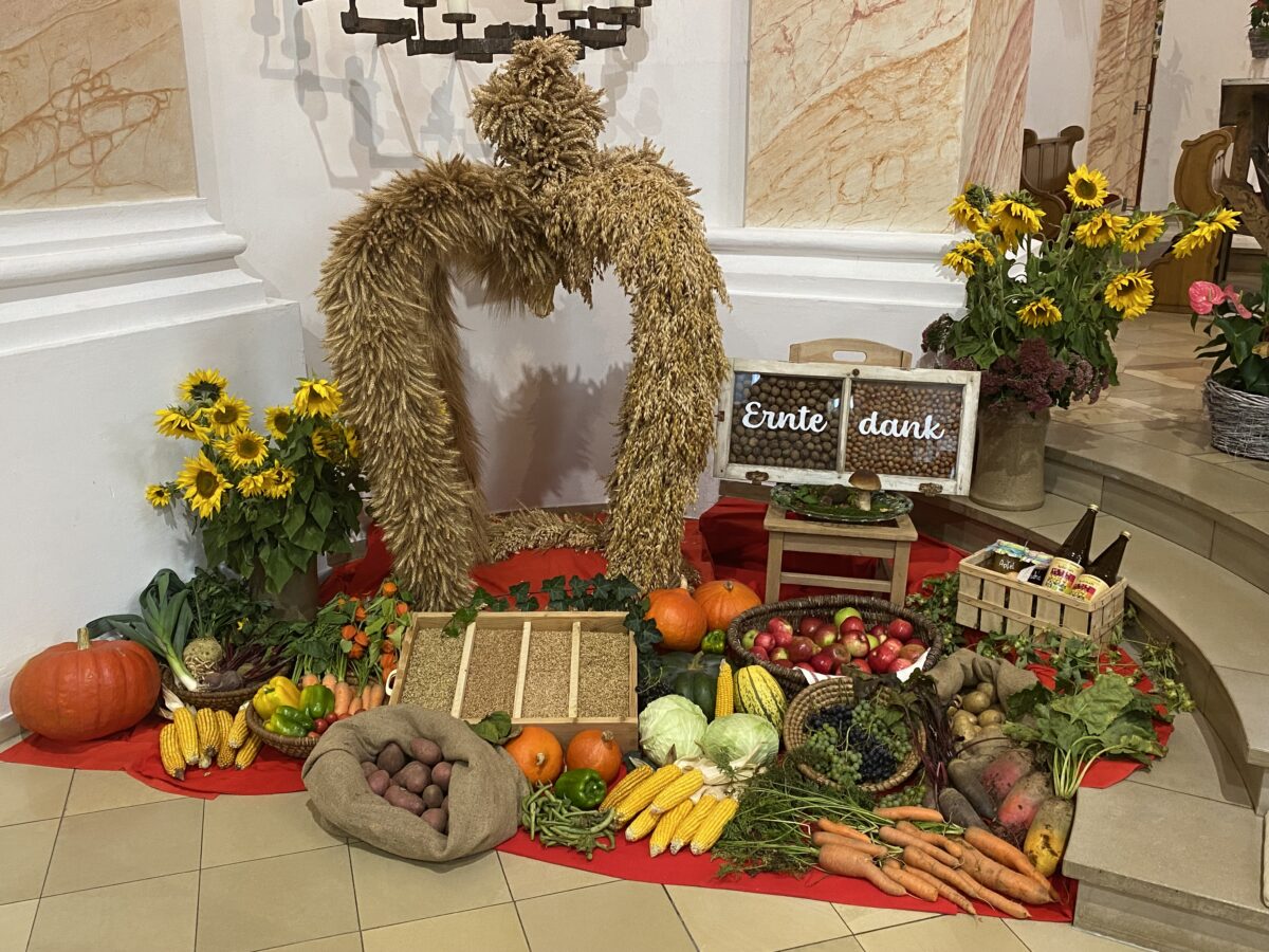 Wenn die Tage schon kürzer werden, auf den Feldern man nur noch Stoppeln und den fruchtbare Boden sieht, ist die Ernte eingebracht. Dann ist auch Zeit zu danken. „Die Ernte ist nicht selbstverständlich“ so Pfarrer Roland Liesaus beim sonntäglichen Gottesdienst, „wie oft wurde sie durch Hochwasser oder Dürre schon zerstört. Trotz aller Arbeit und Mühen ist es immer wieder ein Geschenk“. Weiter rief er den Gläubigen ins Gedächtnis, daß wir auf und von dieser Erde leben und wir verantwortlich für sie sind.