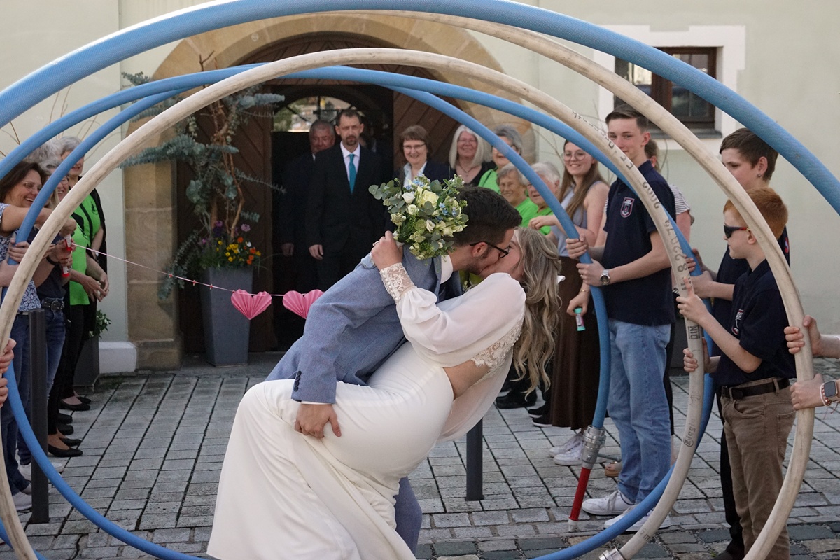 Aus einem zufälligen Gespräch auf dem Bürgerfest in Pressath wurde eine Liebesgeschichte, die nun in eine gemeinsame Zukunft führt: Jennifer (geb. Zintl) und Jonas Plößner haben sich im engsten Familienkreis das Ja-Wort gegeben. Eine Woche später feierten sie ihre Liebe im großen Kreis mit Familie und Freunden auf der Vestn in Pressath – bei einer freien Trauung unter freiem Himmel.