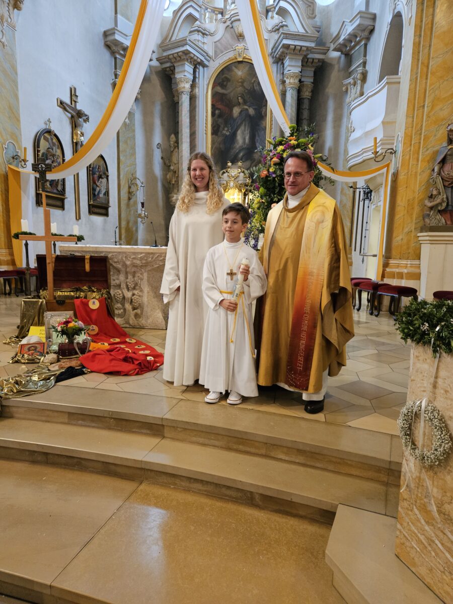 Er dankte allen Eltern für die Vorbereitung und Wegebegleitung des letzten halben Jahres und bat, auch weiterhin den heranwachsenden Jugendlichen ein stabiles Vorbild im Glauben zu sein. Mit den Schätzen in und vor der Schatzkiste werden ihnen die Höhen und Tiefen im Leben leichter fallen. Nach dem feierlichen Segen gab es ein herzliches Vergelt’s Gott und anerkennenden Applaus für die frischen Beiträge des Kinderchores unter der Leitung von Talina Winter und Magdalena Süß sowie Ferdl Völkl an der Orgel.