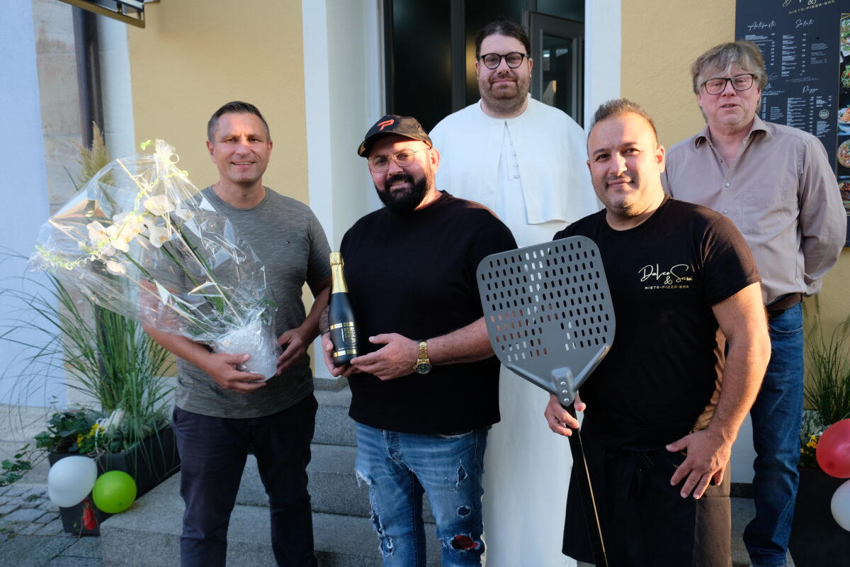 Für die beiden Restaurantchefs war auch die kirchliche Segnung des Restaurants selbstverständlich. Den Segen Gottes verband Stadtpfarrer Johannes Bosco mit Worten aus einem Paulusbrief: “Gewährt zu jeder Zeit Gastfreundschaft”. Den Gästen schenke der Aufenthalt in der neuen Lokalität Erholung und Freude bei gutem Essen und anregender Unterhaltung, so der Wunsch des Seelsorgers. Für Leonardo Pascale und Salvatore Posillipo eine Herzensangelegenheit. Beide Gastronomen verstehen das Pizzabacken als Sache des Herzens. Die kreisrunde Spezialität mit knusprigem Rand stehe für Liebe und Gefühl. “Mit dem Pizzateig ist es wie in einer Beziehung: Beides braucht Hingabe. Man muss zuerst das Werden eines luftigen Teiges kennen, was er braucht und wie viele Stunden er ruhen muss”. Selbstbewusst betonen beide Experten: “Pizza geht immer”.