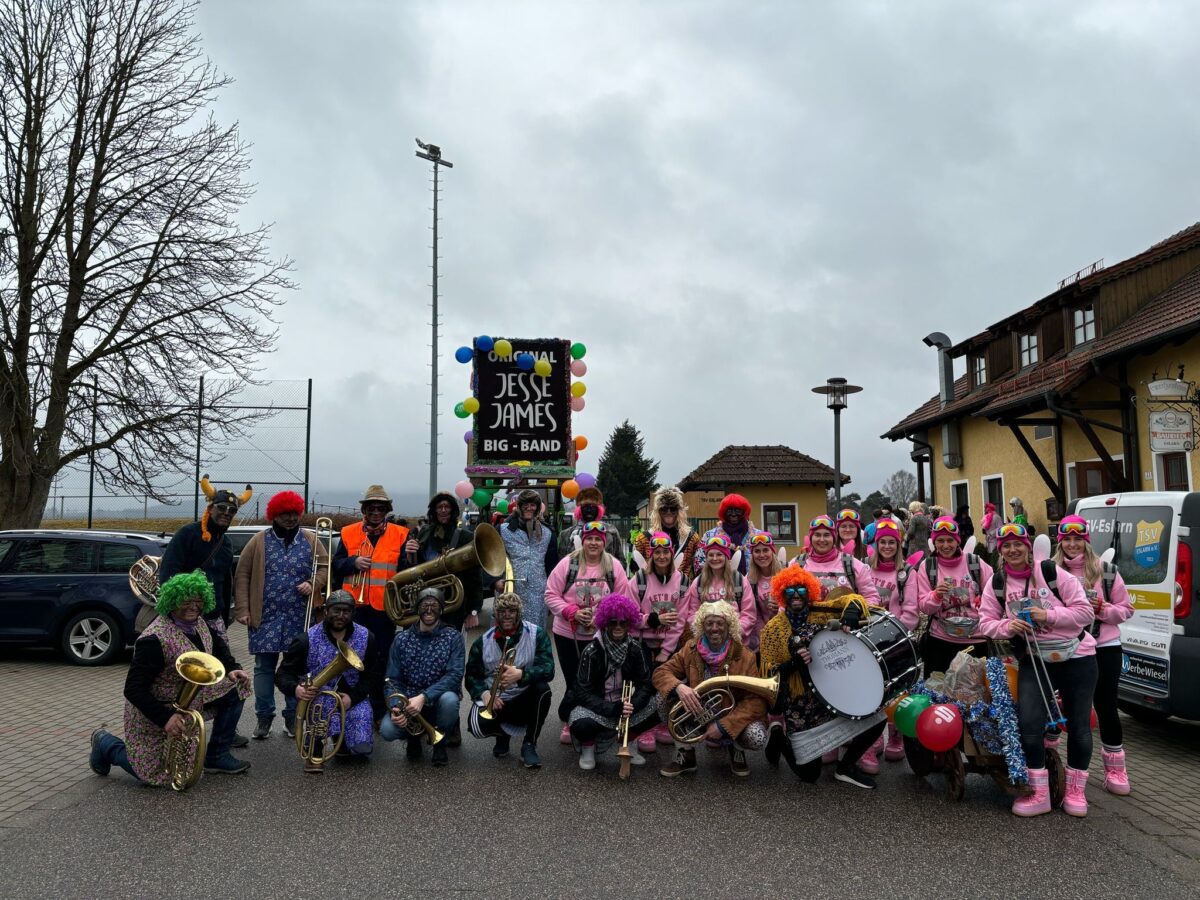 In den Jahren wechselten in der fünften Jahreszeit die Namen der Faschingskapellen und die Besetzungen, sodass in den letzten Jahren nur in der fünften Jahreszeit zwei spezielle Musikgruppen ins Rampenlicht treten. In den Faschingskapellen “Schlutupers” vom “Böhmerwald” und “Jesse-James-Band” vom “Sportzentrum” vereinen sich Musiker aus verschiedenen Kapellen mit Freizeitmusikern. Beim Faschingsumzug durch Eslarn legten die maskierten Gruppen bei den Prochers am Bahnhof, beim Fahrservice Hopfner, Physiotherapie Dimitri und bei Banken einen feuchtfröhlichen Halt ein. Auch das rührige Team von der Tageseinrichtung der Arbeiterwohlfahrt hatte sich bestens auf das lustige Faschingsvolk vorbereitet. Die Musiker glänzten in feschen Röcken und Perücken und machten im Schein als “Frauencombo” musikalisch mächtig Stimmung. Was ebenfalls blieb, ist der Ausnahmezustand auf den Eslarner Straßen und der mächtige Auflauf mit rund 400 Musikern, Anhängern und Zuschauern. Ein Ehepaar war eigens wie im Vorjahr aus Heidelberg angereist, um das Spektakel ein zweites Mal zu sehen und um Bilder für ihre Freunde zu knipsen. “Man kann froh sein, wenn vor allem Jugendliche diesen Brauch noch aufrecht erhalten”, stellten beide fest.