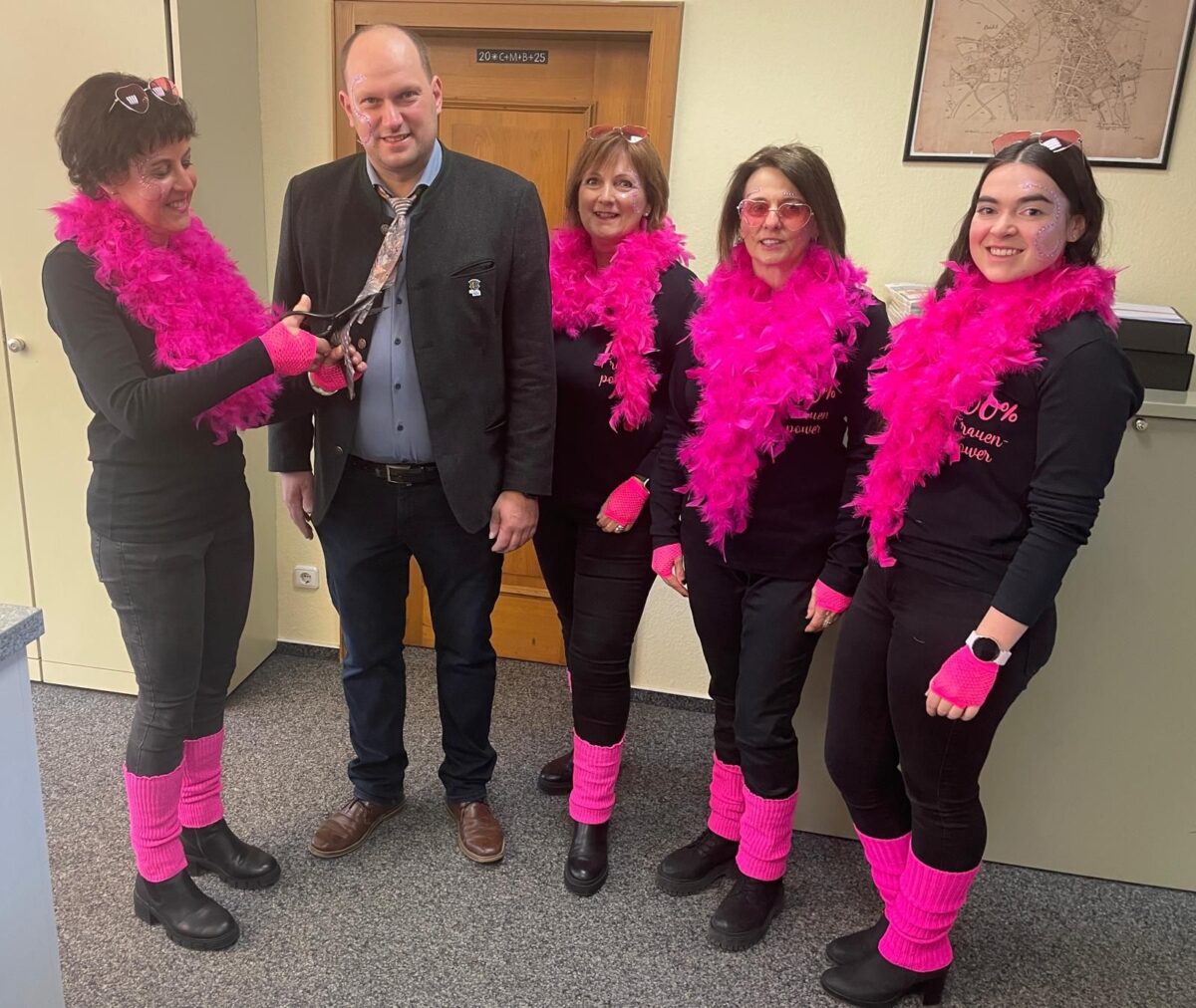 Eine Bereicherung sind alljährlich zahlreiche Maskeraden, die sich als “Crossdresser” unters Volk mischen und sich in Frauenkleidern mit übergroßen “Rundungen” in “Doppel-D” überschätzen. “Azapf ist”, hieß es vom Bauhofteam beim Gratis-Bierausschank am Zoigl-Brunnen. “Endlich sprudelt aus dem symbolischen Bier-Sudkessel wieder das kostbare Zoiglbier”, freute sich auch zweiter Bürgermeister Thomas Kleber. So mancher Krawatten-Träger musste sich nach einer “Scheren-Attacke” durch das weibliche Geschlecht an diesem Tag mit “Halbmast” begnügen. Auf den Kulturstrick des Vize-Bürgermeisters hatten es die “Eslarner Rathaus-Bixn” mit Erfolg abgesehen. Den Schlussakkord am Rathaus setzten die Musiker mit der bekannten Polka-Melodie “Auf der Vogelwiese”.