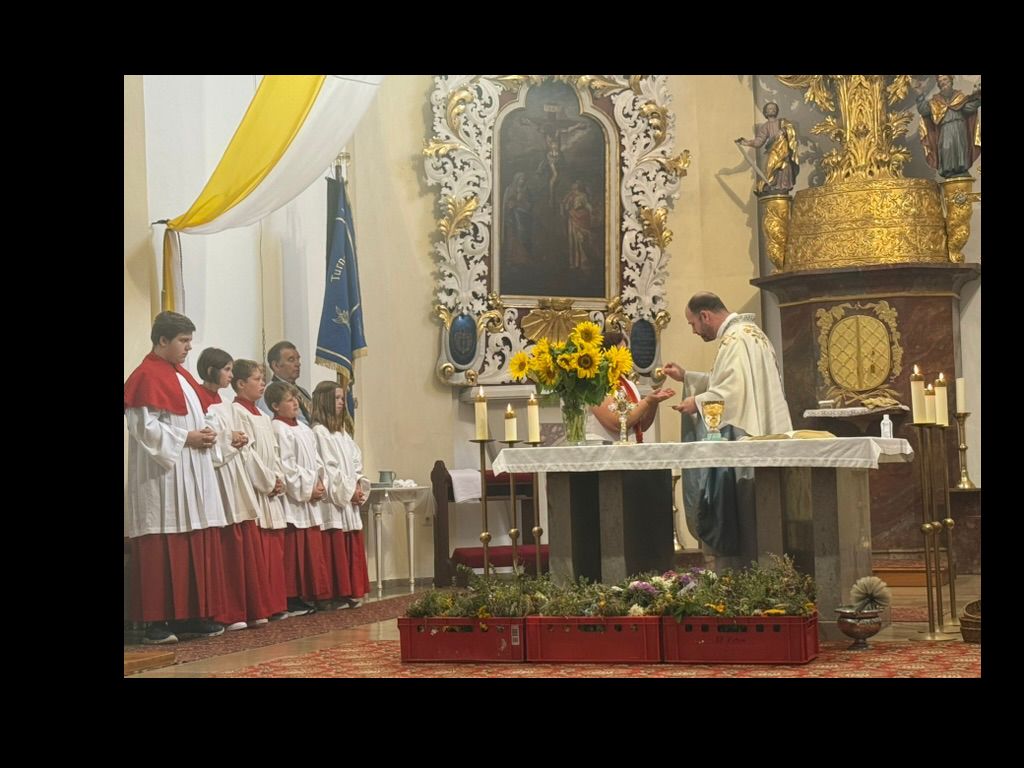 Die Fahnenträger versammelten sich am Altar und die Festmesse umrahmte musikalisch der Kirchenchor mit Organistin Martina Brenner. Gemeinsam mit Pfarrer Erwin Bauer zelebrierte Festprediger Pfarrer Gerhard Pöpperl den Festgottesdienst. Der Prediger ist in Straubing aufgewachsen und ist seit zwei Jahren für den Pfarrverband Straßkirchen, Landkreis Straubing-Bogen, zuständig. Vorher war er als Diözesandirektor für die Priesterseminare verantwortlich. Familiäre Gründe zogen den Niederbayer wieder in seine Heimat.