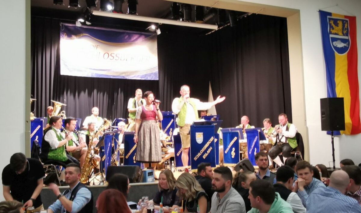 Die musikalische Begleitung der “Schlossberger” ist ebenso ein Höhepunkt des Starkbierfestes. Von traditioneller Blasmusik bis hin zu modernen Schlagern wird ein breites Repertoire geboten. Das Gesangs-Duo Lisa Grießl und Norbert Roßmann erweitert das musikalische Angebot, während Musiker Rudi Salomon das Trio mit seinem Gesang komplettiert.