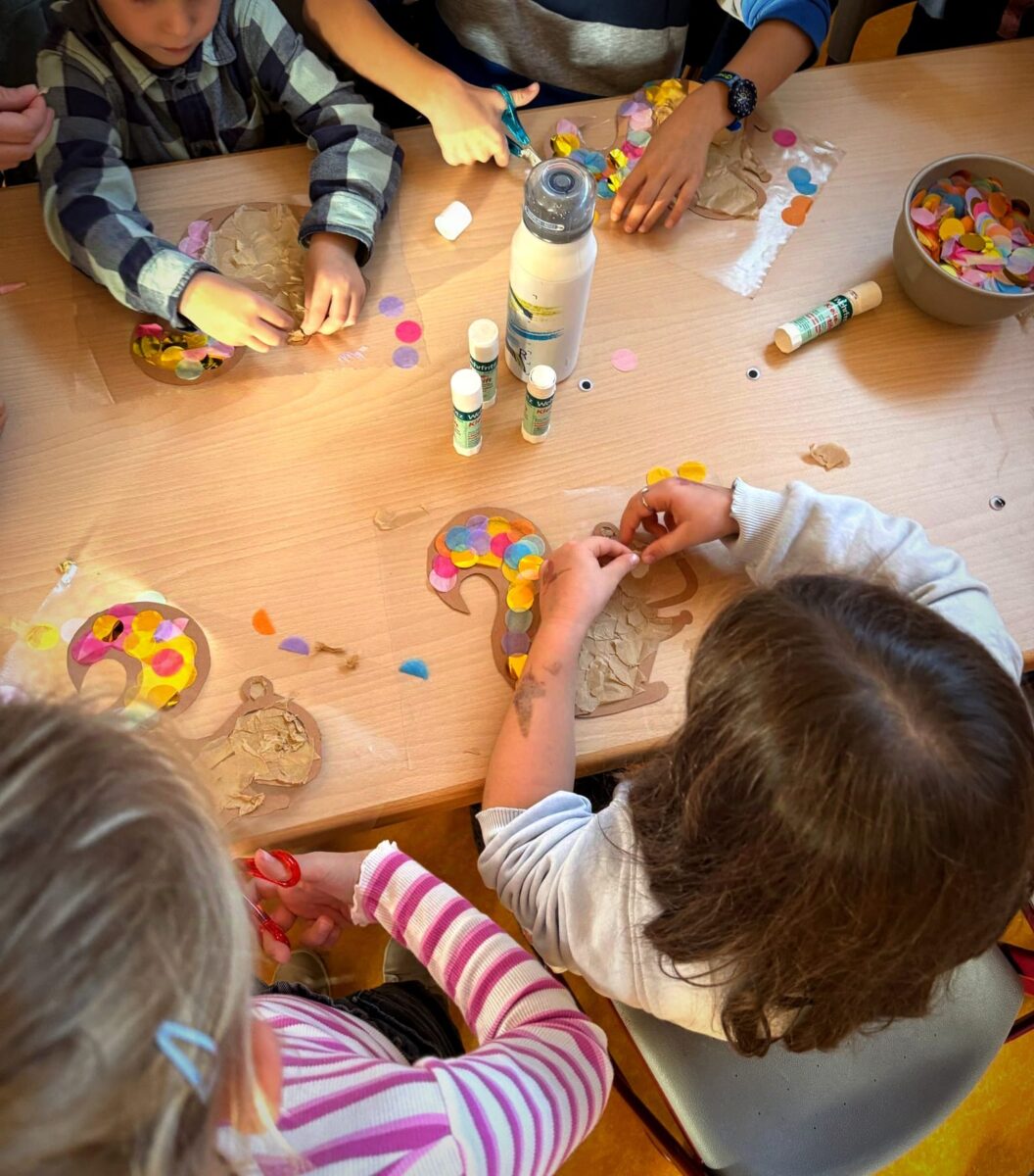 Nach der aufregenden Detektivarbeit nahmen die Kinder an einer Bastelstunde teil. Kerstin Schmid ergänzte das Büchereiteam und half beim Basteln von süßen Eichhörnchen, die anschließend als herbstliche Dekoration dienten. Diese bunten Basteleien schmücken nun die Fenster zu Hause und in der Bücherei und bringen den Herbstzauber direkt ins Zimmer.