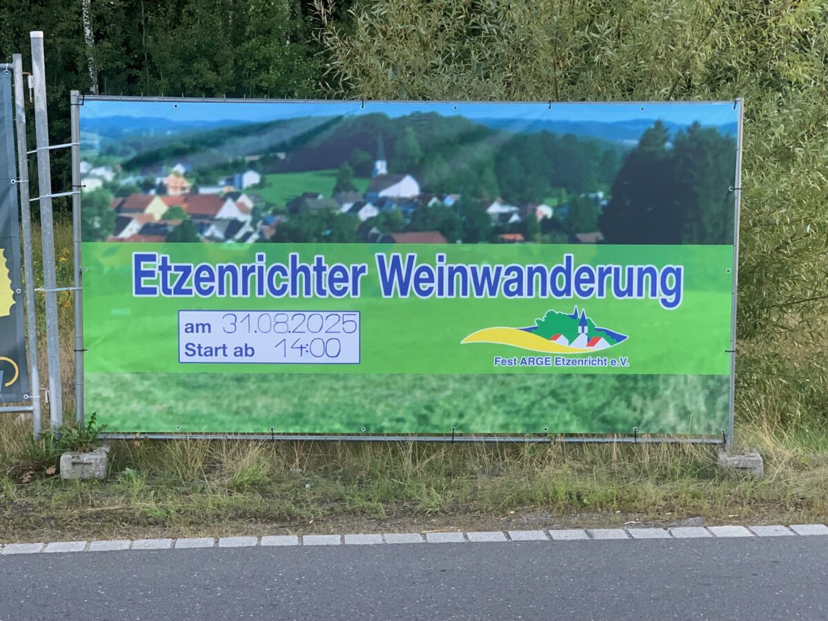 Die „Weinwanderung 2025“ soll Abwechslung in den Veranstaltungskalender bringen und richtet sich als Angebot nicht nur an Etzenrichter, sondern auch an Gäste aus dem Umland. Als Termin für die „Premiere“, zunächst wohl ein Test und bei Gelingen mit Fortsetzungen geplant, wurde Sonntag, der 31. August ausgewählt. Gestartet wird um 14 Uhr am Dorfplatz rund um den Pavillon.