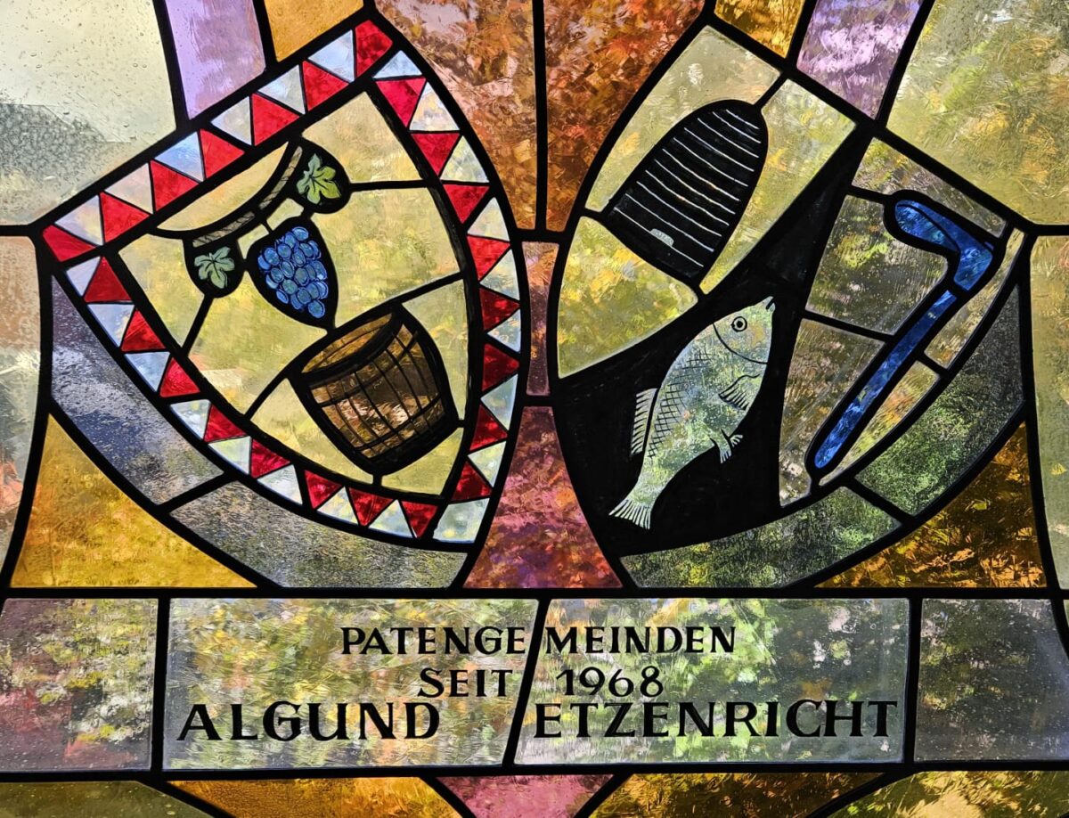 In Algund ist derzeit Ulrich Gamper, Sohn des damaligen Patenschaft-Gründervaters der Bürgermeister der Gemeinde und vertritt dies auch mit Stolz. Eine Führung im Algunder Rathaus durfte daher nicht fehlen und zeigte den Gästen, die das Rathaus noch nicht kannten, dass hier die Patenschaft auch durch Symbole, wie zum Beispiel ein buntes Fenster mit den beiden Gemeindewappen, oder einem Glasaufsteller, der zu einem runden Patenschaftsjubiläum überbracht wurde, gezeigt wird.