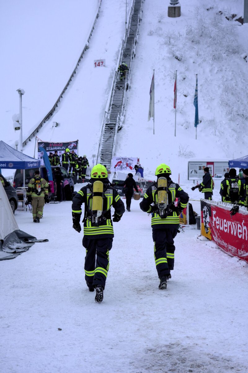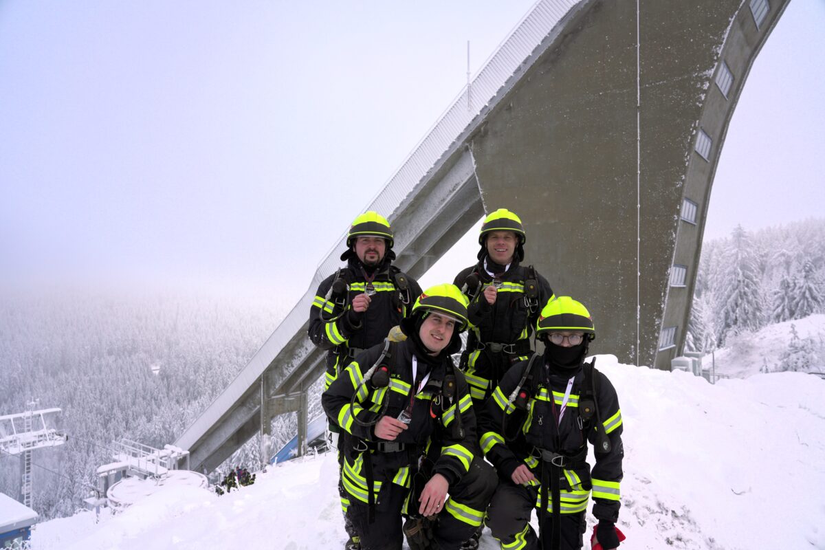 Die erste Idee, an einem „Stairrun“ teilzunehmen, hatte man bereits während der Coronazeit. Ein Feuerwehrler war darauf aufmerksam geworden. Da aber während dieser Zeit keine Wettkämpfe stattfanden, geriet alles zunächst wieder in Vergessenheit. „Den XMAS Stairrun“ in Oberhof hat Tobias Rösch zufällig im September auf Instagram gefunden, erzählt Kommandant Michael Roith.