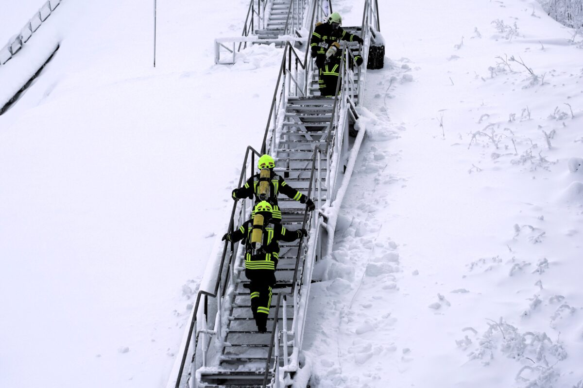Etzenrichter Feuerwehr erklimmt beim XMAS Stairrun die Skisprungschanze