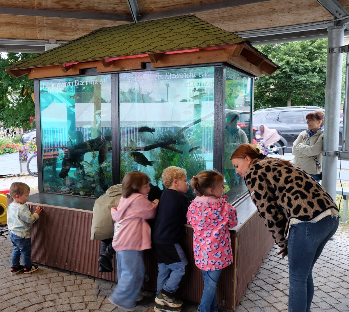 Ein Highlight auf dem Fischerfest ist jedes Jahr das überdimensionale Aquarium, welches heuer im Rondell des Dorfplatzes aufgebaut war und ständig von Kindern, aber auch vielen Erwachsenen belagert war. Hier waren eine Vielzahl der heimischen Fischarten zu bestaunen. Es kam auch immer wieder einmal einer der Fischer vorbei und erklärte den Kids, um welche Fische es sich hier handelt.