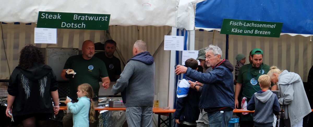 Fischliebhaber durften sich die kulinarischen Spezialitäten wie schmackhaft gewürzte gegrillte Makrele, geräucherte und gegrillte Forelle, oder geräucherte Aale und auch Salzheringe munden lassen. Die Kids fanden ihre Liebe an Fischfritten mit Majo oder Ketchup. Aber auch hervorragend zubereitete Fischburger, Fischpflanzerln oder Backfisch fanden reißenden Absatz. Alles delikate Speisen, die es nicht alltäglich zu genießen gibt. Jedoch auch Fisch- und Lachssemmeln gingen über die Theken und da es trotzdem auch Menschen gibt, die tatsächlich keinen Fisch mögen, hatte die Speisekarte noch Steaks, Bratwürste, oder Dotsch zu bieten.