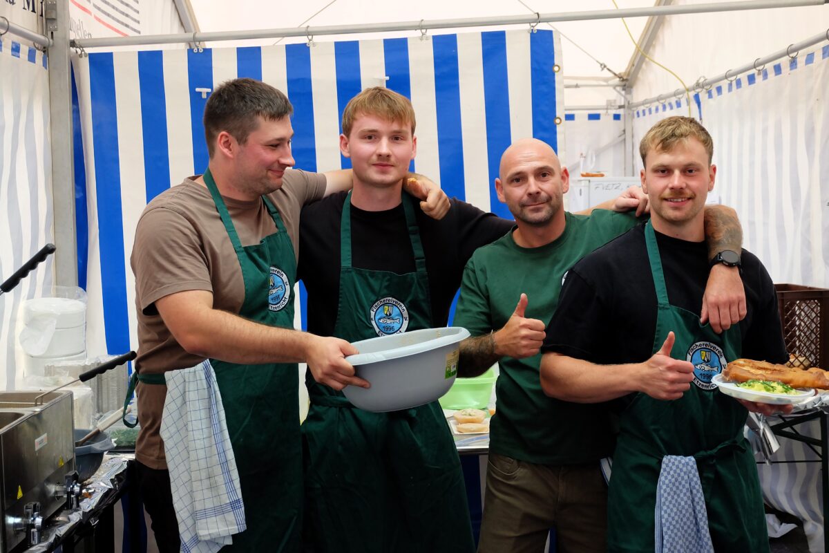 Fritz Kick und die zahlreichen helfenden Vereinsmitglieder erhielten viel Lob für die hervorragend zubereiteten Köstlichkeiten. Dank eines eingespielten Teams, bei dem jede Hand weiß was zu tun ist, funktioniert das Fischerfest schon seit Jahrzehnten wie geschmiert.