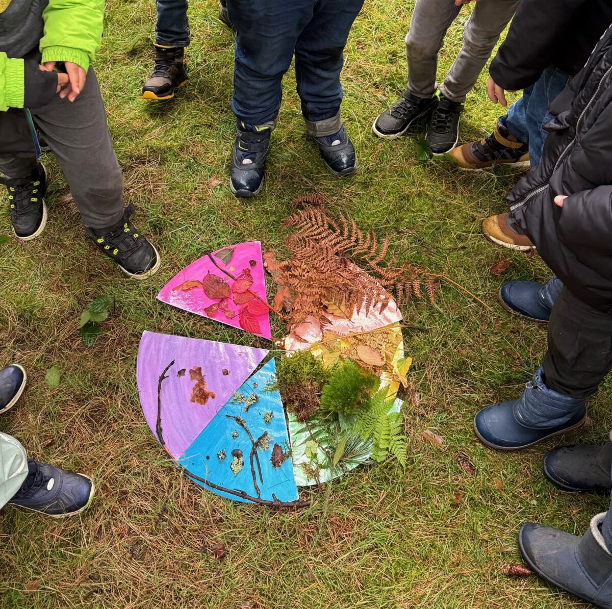 Mit Naturmaterialien legten die Schüler in Gruppen Mandalas und bezogen sich dabei auf den Farbkreis von Johannes Itten. Sie bauten auch aus Ästen ein gemeinsames Haus im Wald, was die Kreativität und das Teamwork förderte. Ein Picknick sorgte anschließend für die nötige Stärkung nach dem bewegungsreichen Vormittag.