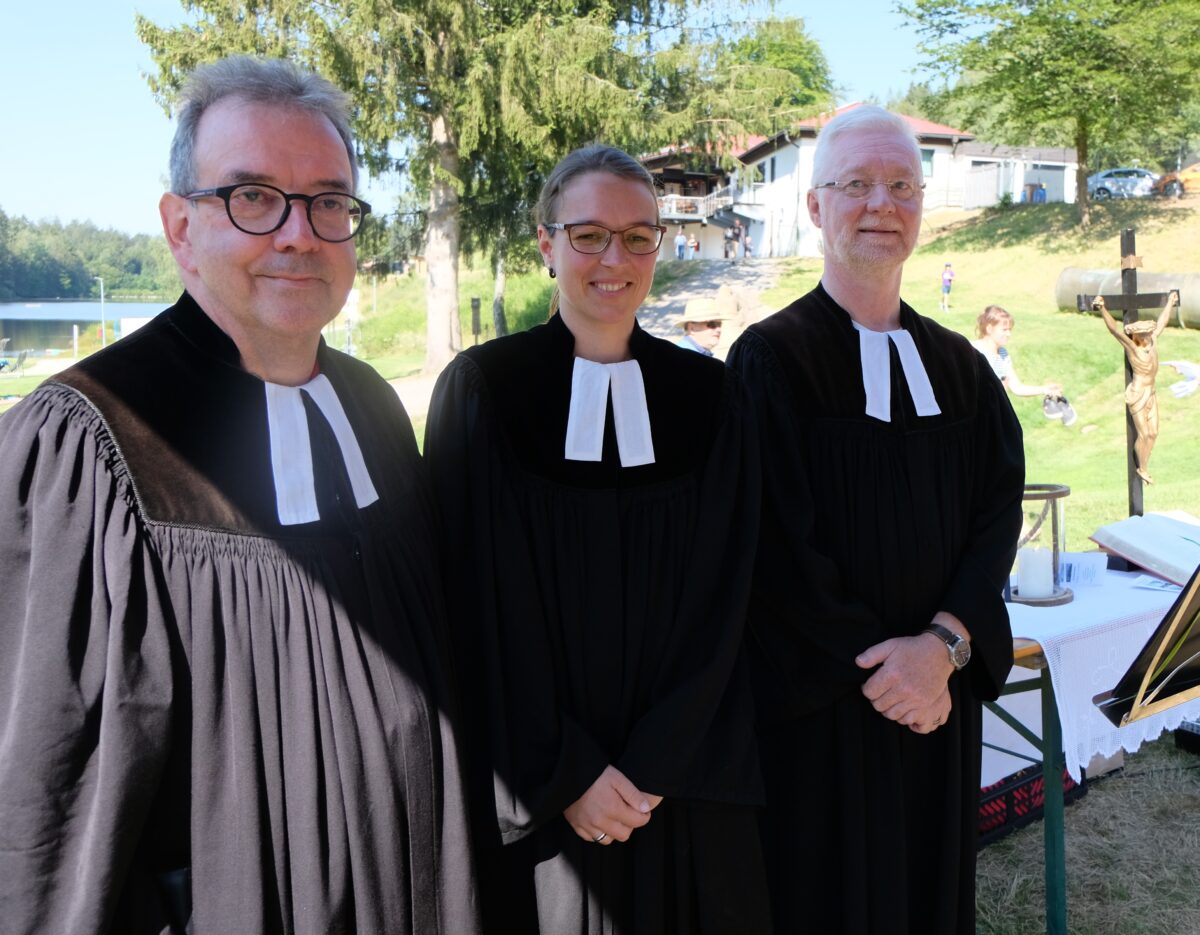 Mehr als 200 Gläubige feierten mit Pfarrer Wilfried Römischer (Floß), Pfarrerin Carmen Riebl (Vohenstrauß) und Pfarrer Klaus Weber (Plößberg) einen eindrucksvollen und nachhaltigen FamilienGottesdienst bei strahlend blauem Himmel. Allein die Atmosphäre, in freier Natur Gott zu preisen, loben und zu danken, machte das Treffen besonders. Besonders hervorzuheben ist die Mitwirkung der “Posaunenchöre aus dem Flosser Amt” unter der souveränen Leitung von Tanja Riedl aus Floß. Der Gemeinschaftschor gab dem Gottesdienst und der feierlichen Stunde des Gebets und Gesangs ein besonderes musikalisches Gepräge.