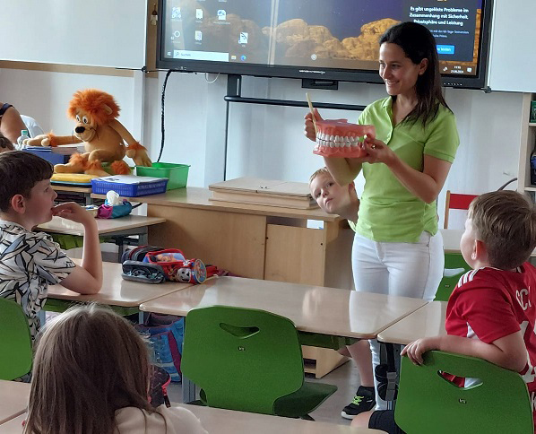 Zudem verdeutlichten spannende Experimente die Wichtigkeit des täglichen Zähneputzens mit fluoridierter Zahnpasta. Mit viel Enthusiasmus und Fachwissen gelang es dem Team der Zahnarztpraxis, die wissbegierigen Jugendlichen zu motivieren und ihnen die Grundlagen für eine lebenslange Zahngesundheit zu vermitteln.