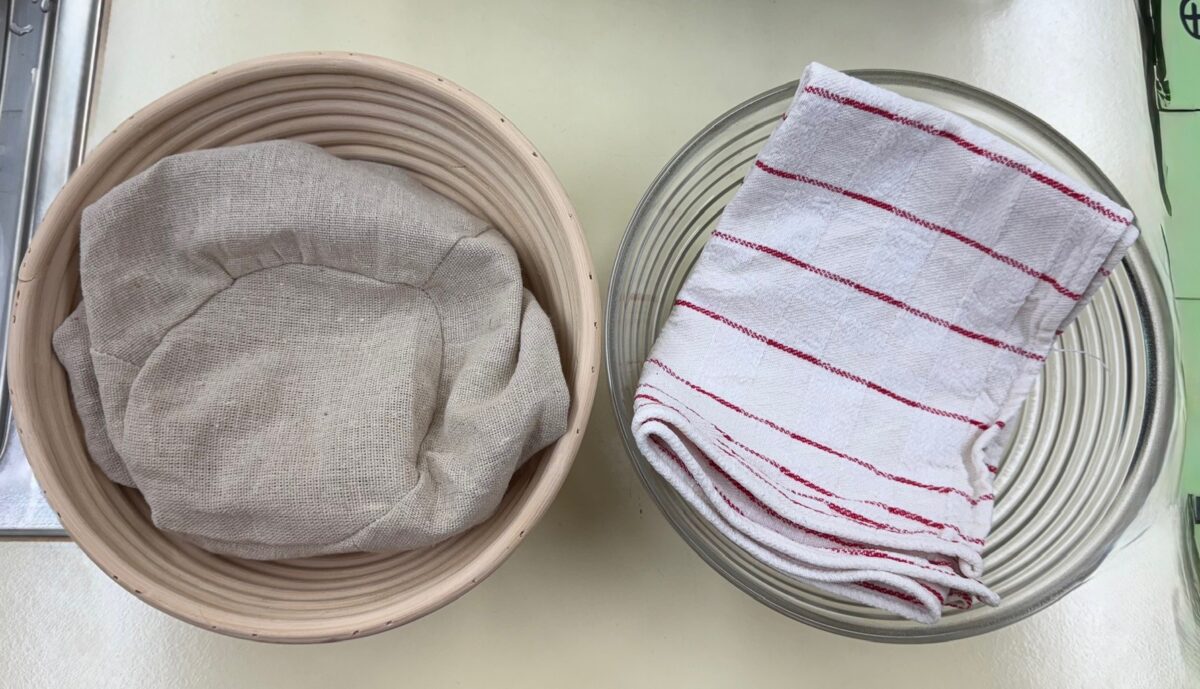 Während der Gehzeiten stand die Theorie auf dem Stundenplan. Die Studierenden beschäftigten sich mit den mikrobiologischen Grundlagen der Fermentation und den Vorteilen fermentierter Lebensmittel. „Diese wirken sich nicht nur positiv auf die Darmflora aus, sondern es werden dadurch sogar mehr Nährstoffe verfügbar und die Haltbarkeit wird verlängert“, erklärt die Fachlehrerin. Auch Blutzucker, Stimmung und Cholesterin können laut Angaben der Fachkraft positiv beeinflusst werden. Nach der ersten Gehzeit wurden die Teige zu Brotlaiben geformt und in Gärkörbchen gelegt. Tipp der Expertin: Wer solch ein Körbchen nicht besitzt, kann einfach eine Schüssel mit einem Leinen- oder Baumwolltuch auslegen und mit Roggenmehl bestäuben.